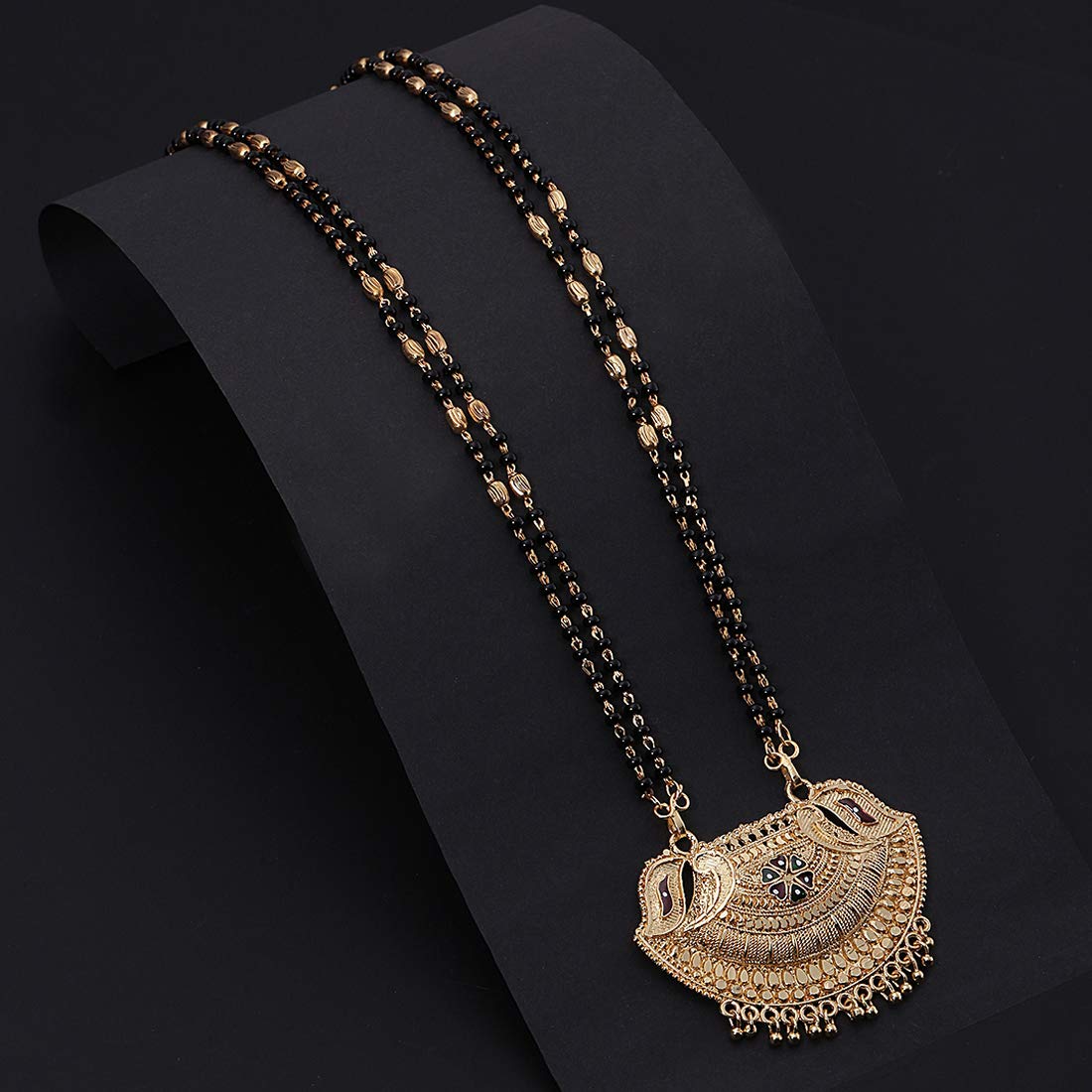 - Stunning Design: Adorned with beautiful black beads and a golden long chain featuring enchanting Meenakari work, this Mangal Sutra is a true masterpiece.