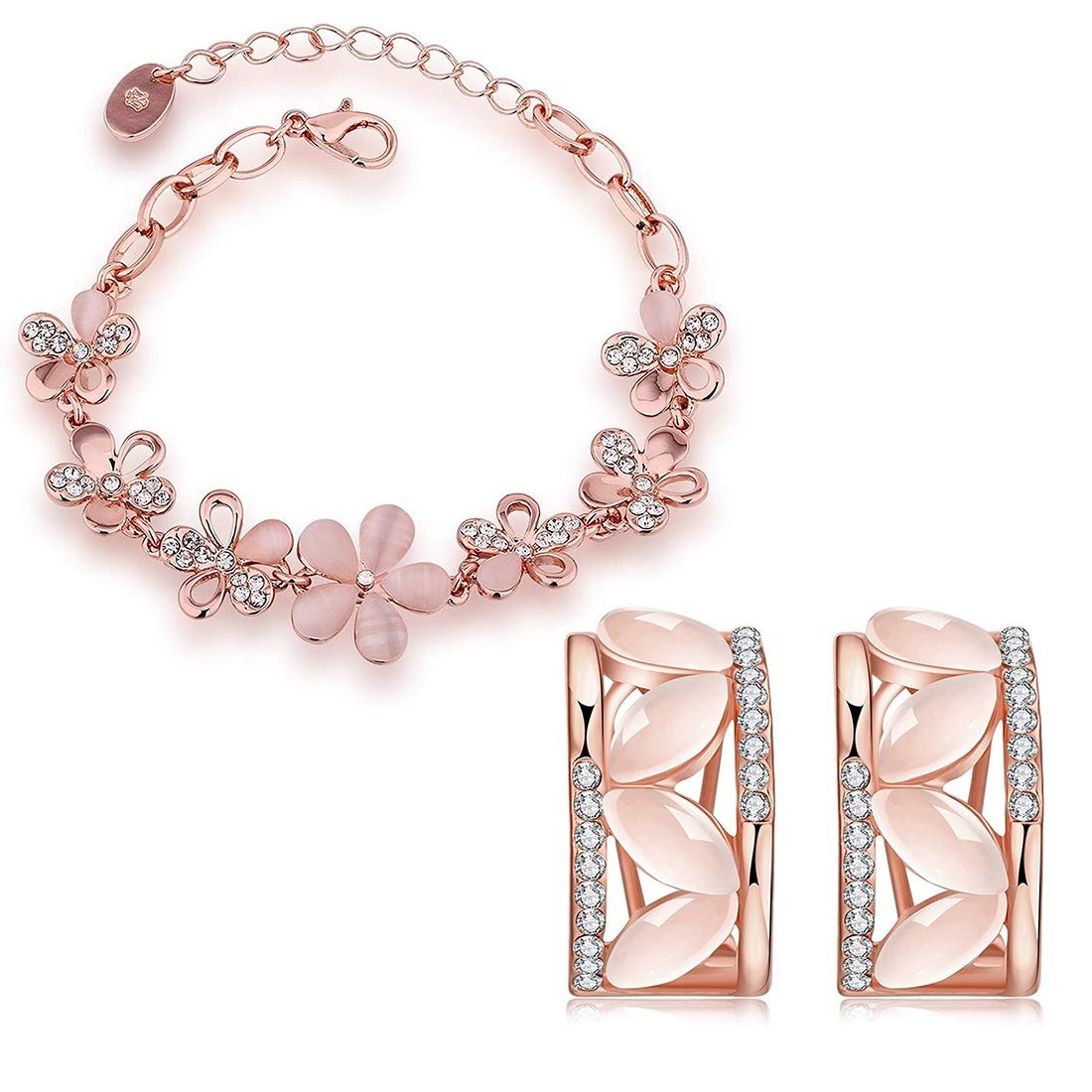 Exclusive Opal Collection Designer Combo 18K Rose Gold Plated Bracelet Earring Set for Women and Girls