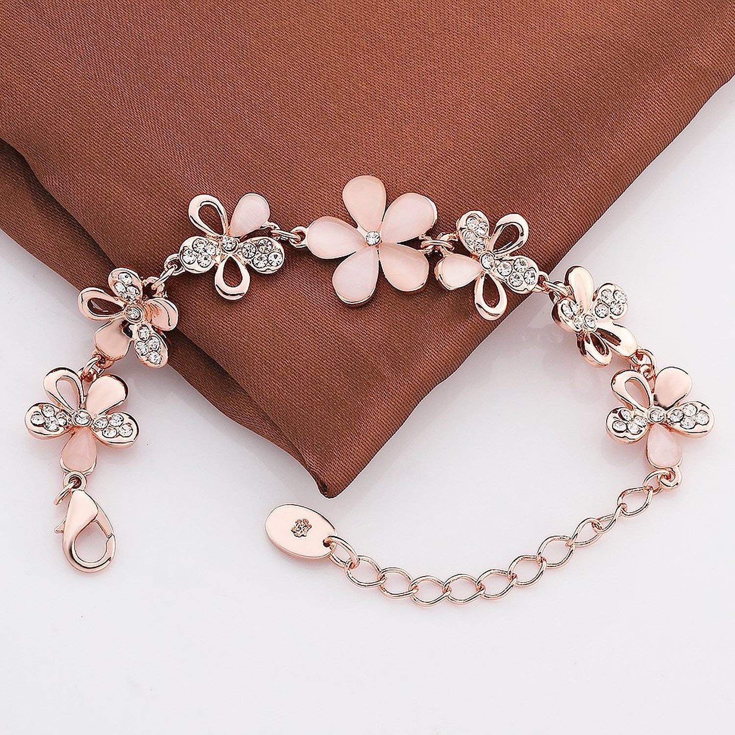 Yellow Chimes Exclusive Opal Collection Designer Combo 18K Rose Gold Plated Bracelet Earring Set for Women and Girls