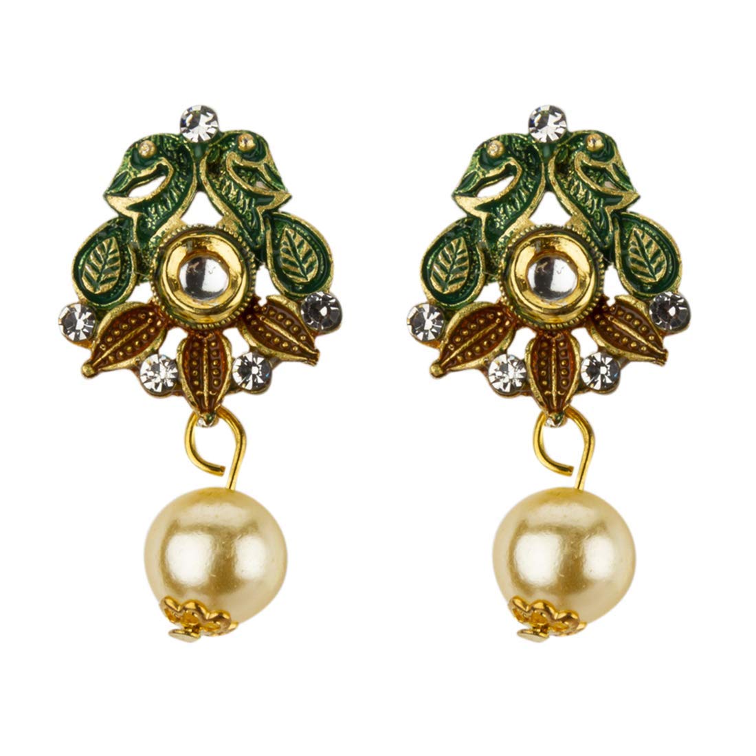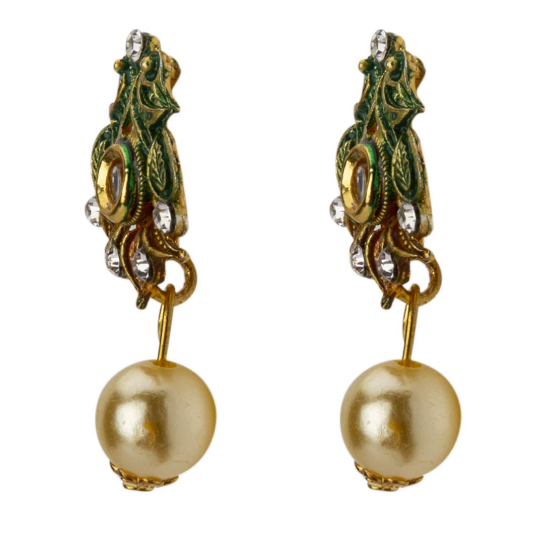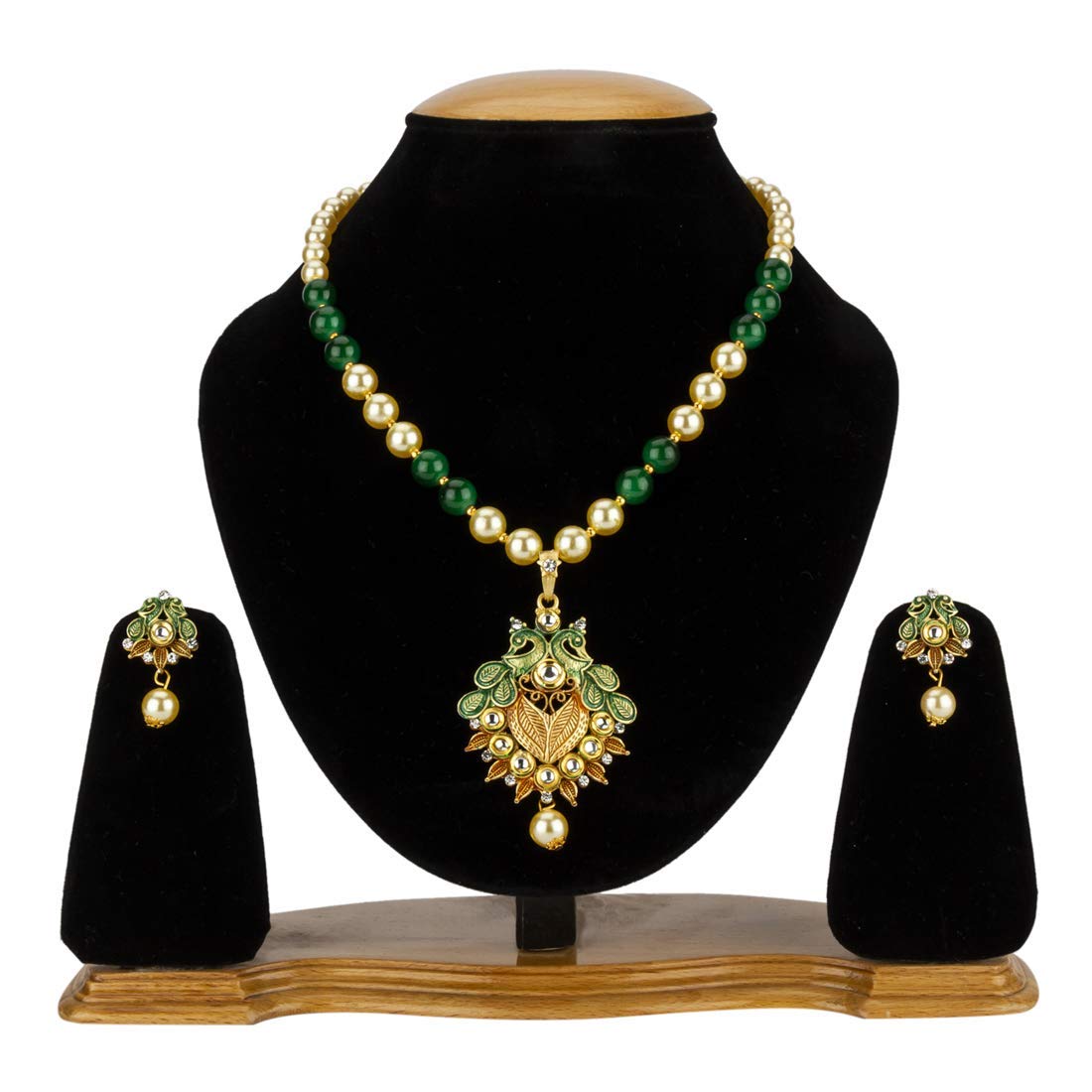 Yellow Chimes Exclusive Traditional Floral Peacock Desaign Pearl Kundan Necklace with Drop Earrings for Women