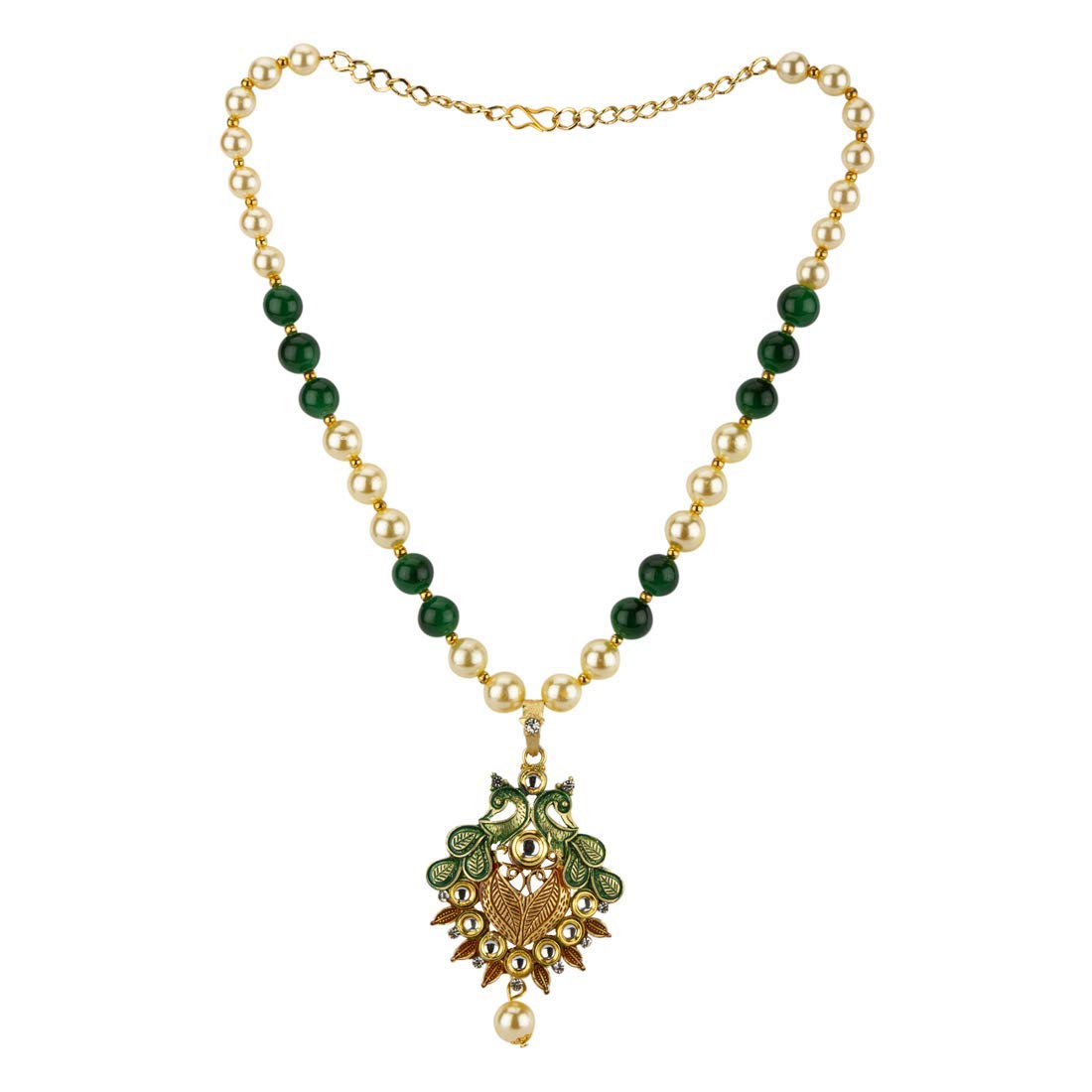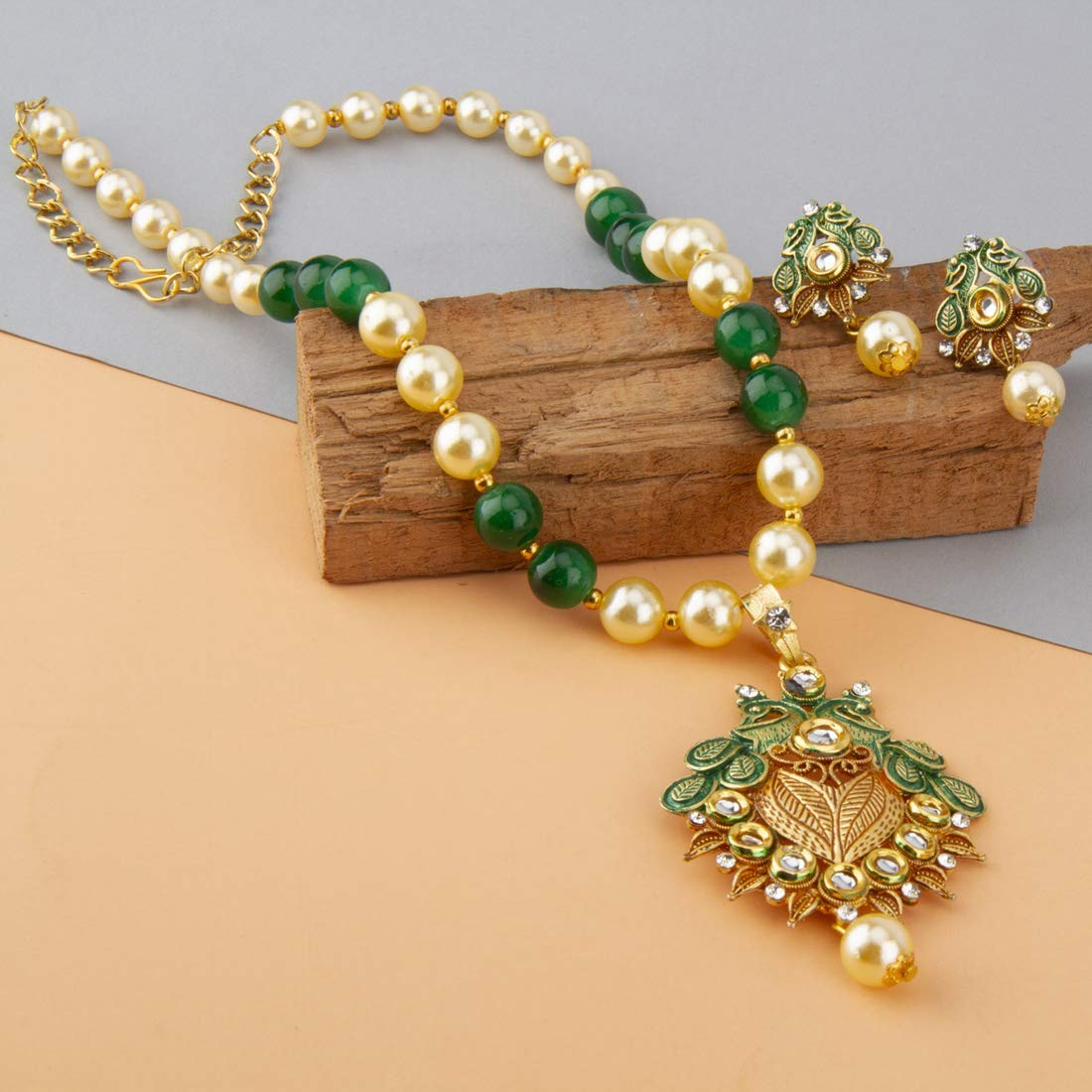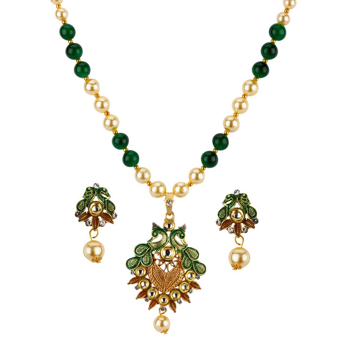Yellow Chimes Exclusive Traditional Floral Peacock Desaign Pearl Kundan Necklace with Drop Earrings for Women