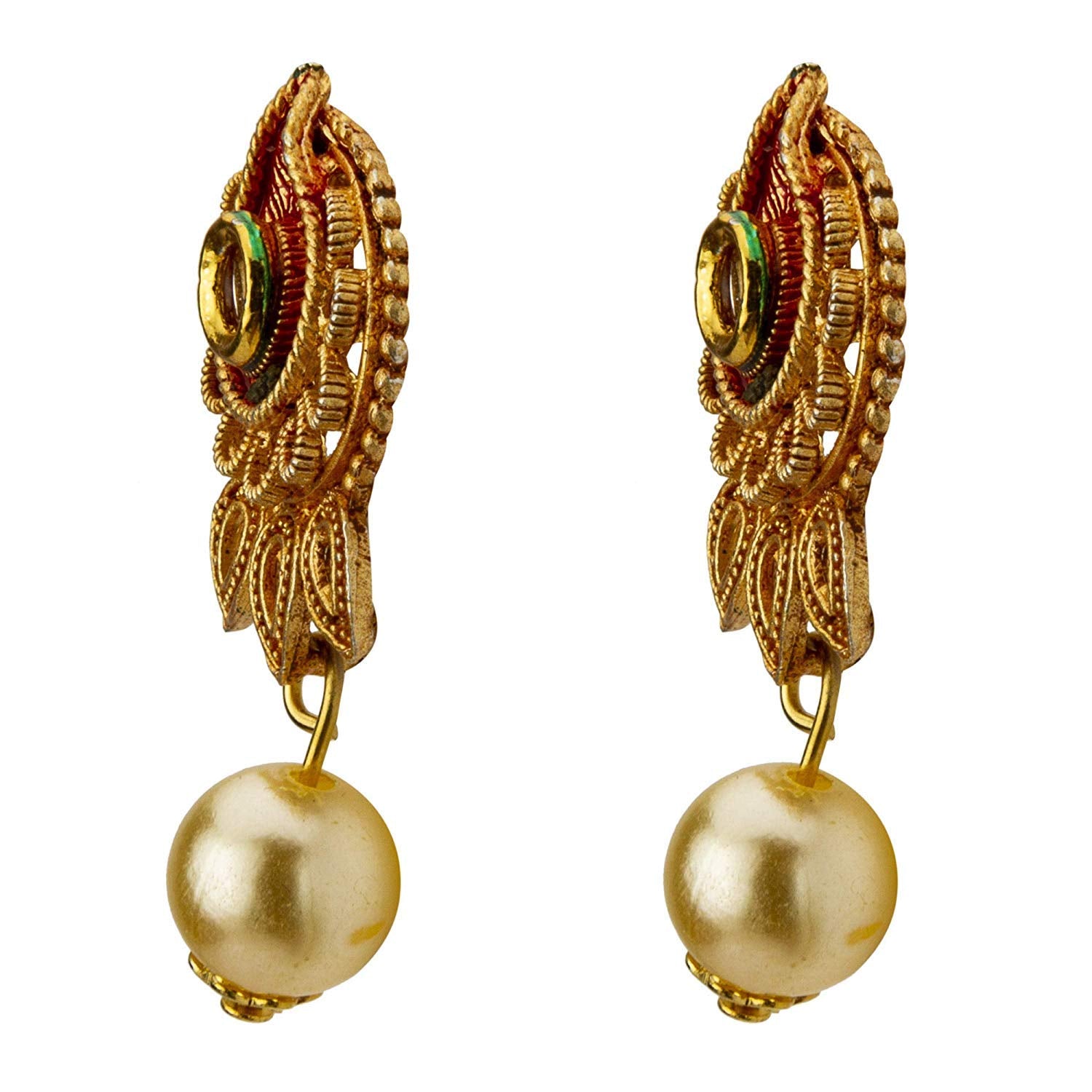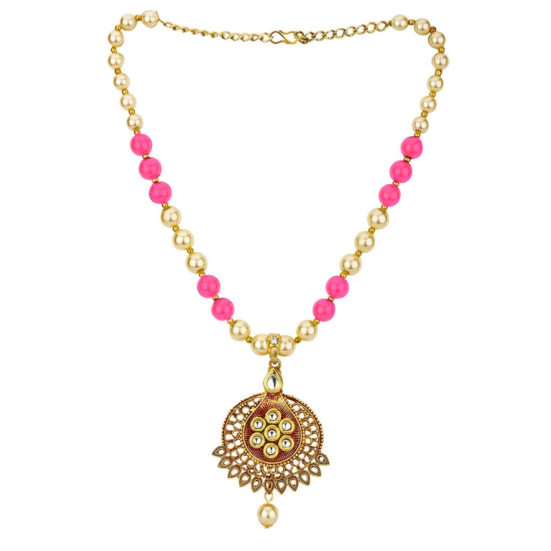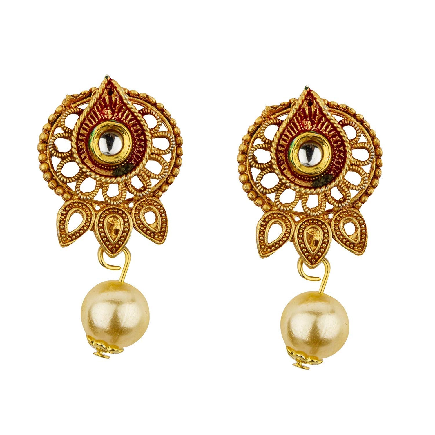 Yellow Chimes Exclusive Traditional Pearl Kundan Floral Dfesign Necklace With Drop Earrings For Women