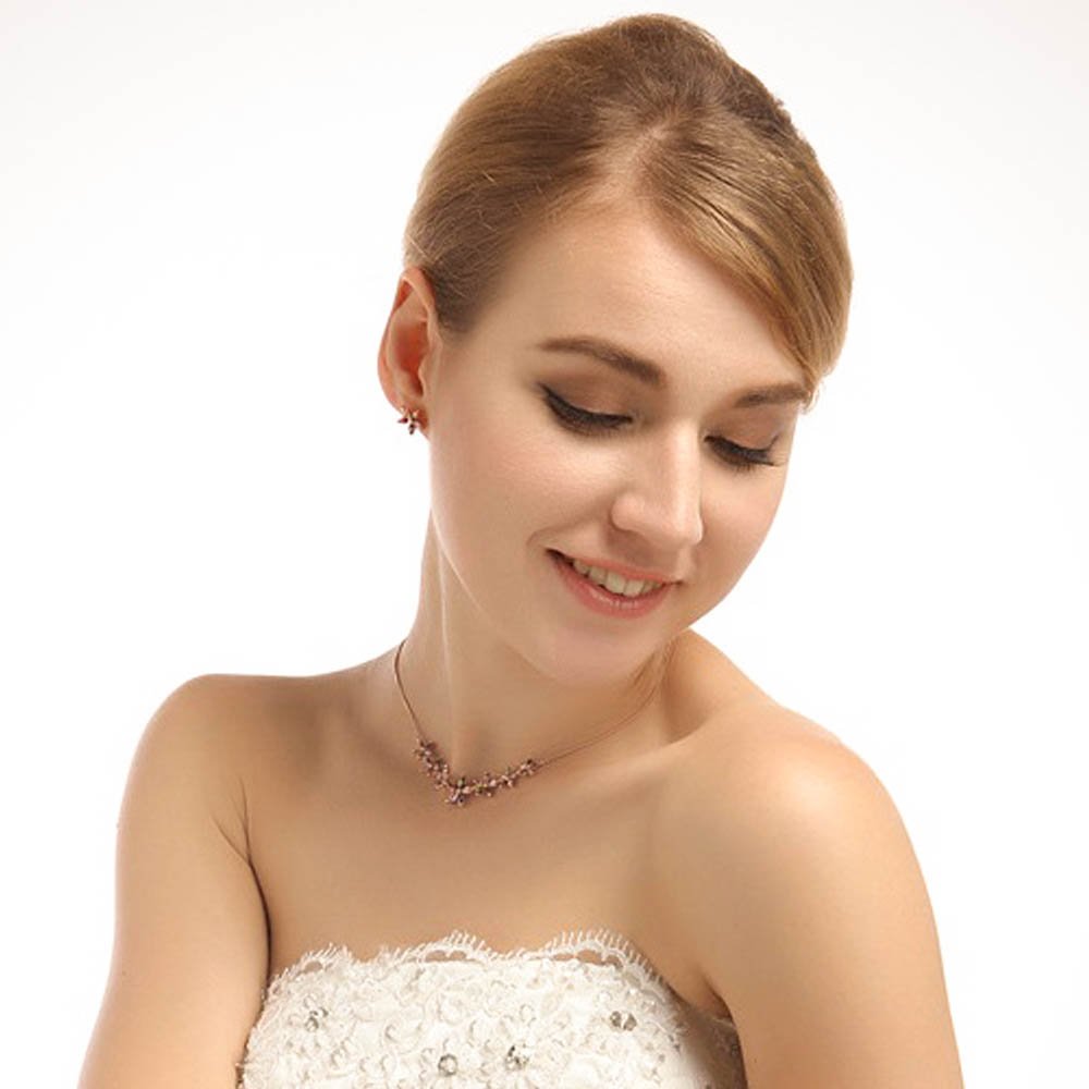 Fashion Jewellery Set for Women Florets Charms Swiss Cubic Zirconia 18K Rose Gold Plated Necklace Set for Women and Girls