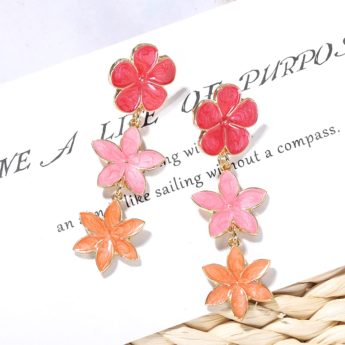 Floral Earrings for Women Gold Plated Multicolour Floral Long Drop Earrings for Women and Girls
