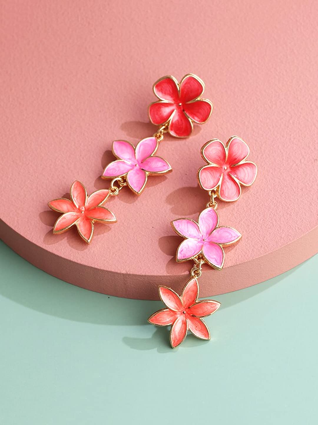 - Stylish Latest Fashion Design Gold Plated Multicolour Flower Design Drop Earrings. Stylish Adorable golden drop Earrings, These designer earrings will complement any Occasion Formal/ Casual/ Party Wear
