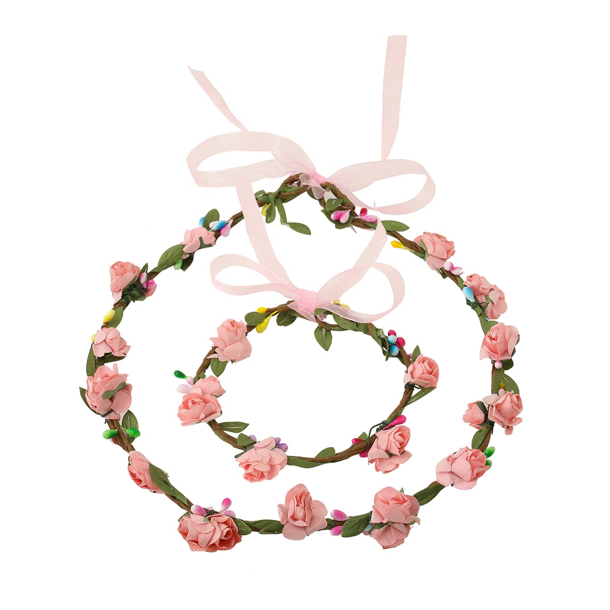 Floral Tiara and Bracelet Set for Women Pink Bridal Wedding Headband Hair Tiara For Women Bridesmaid Tiara Vines Set Hair Accessories.