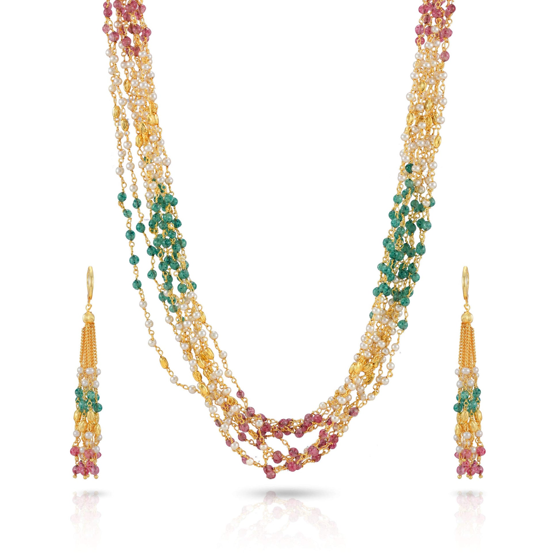 - Style: Ethnic & Stylish Looks ,Multilayer Ganthan Moti Bandhani Ladi Necklace set with Stunning and Preciously Suitable Looks for all Kinds of Occasions- Party / Festival / Outings. It's a choice of many Bollywood celebrities and stars too!