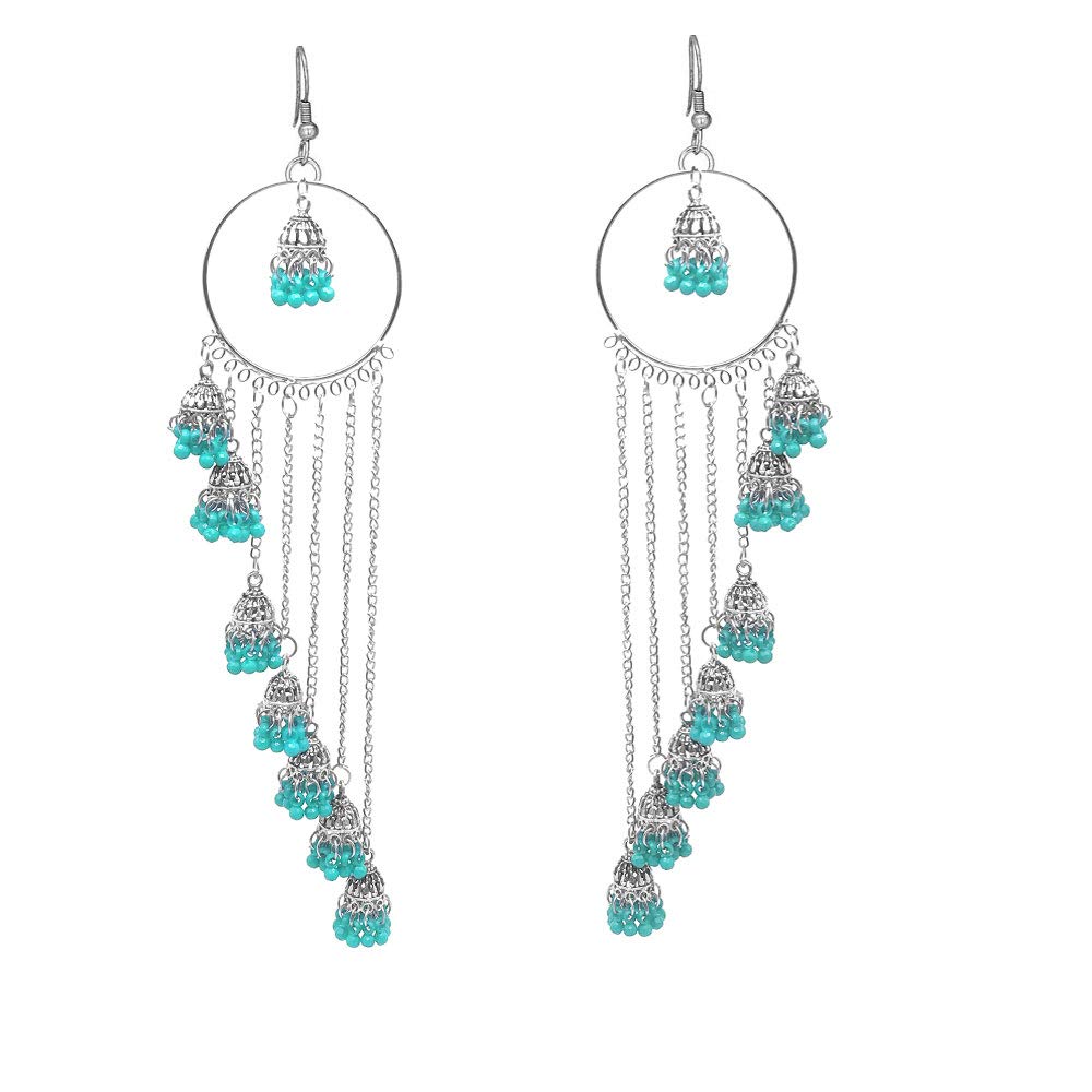 Yellow Chimes German Silver Oxidized Kashmiri Style Bali Traditional Jhumka Jhumki Earrings for Women and Girls (Blue)