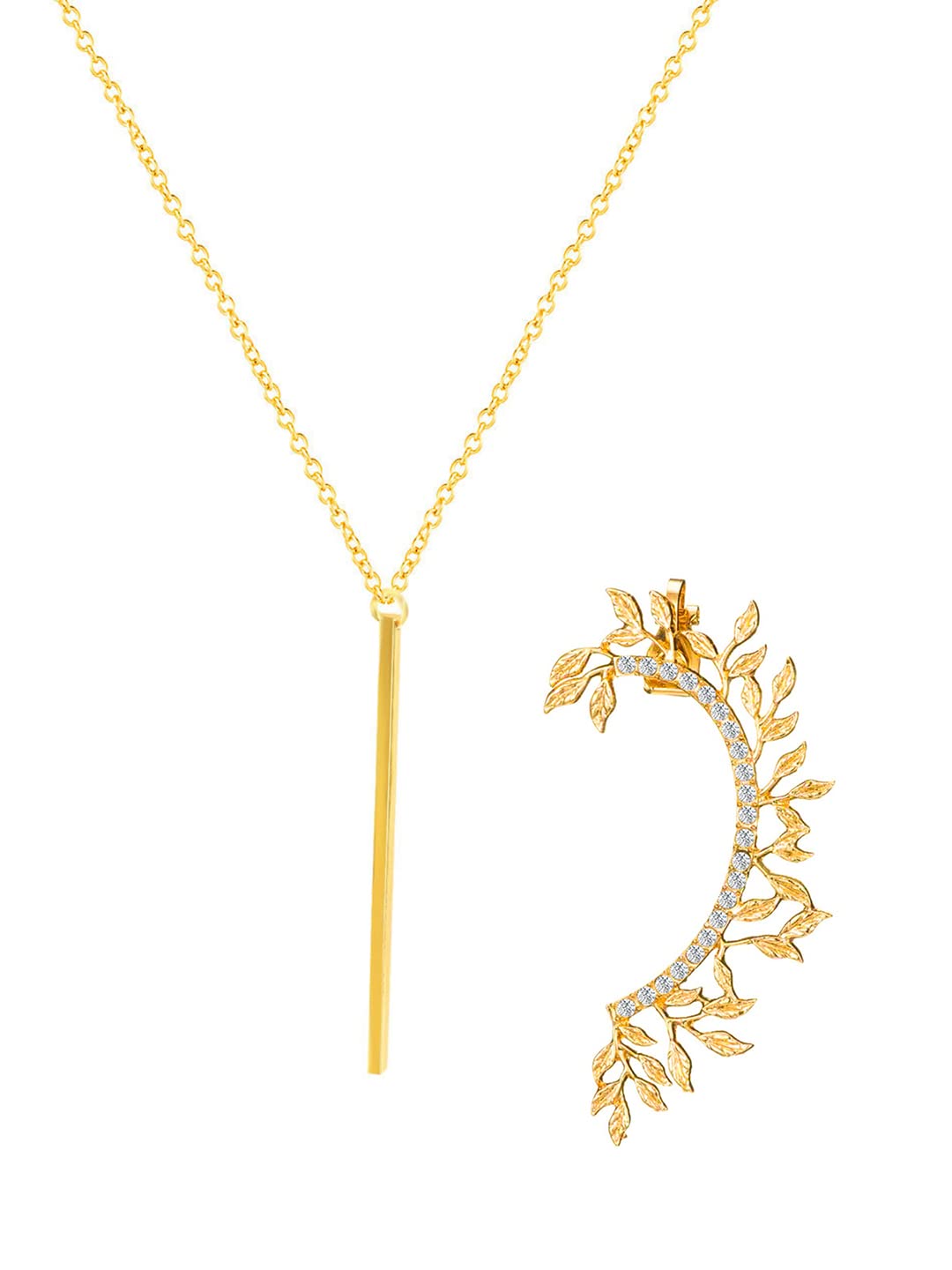 Yellow Chimes Gold-Plated Bar Style Pendant Neck Chain With Stone-Studded Earcuff For Women & Girls