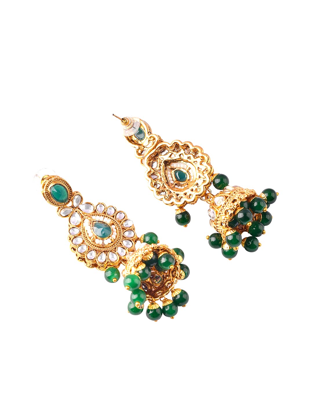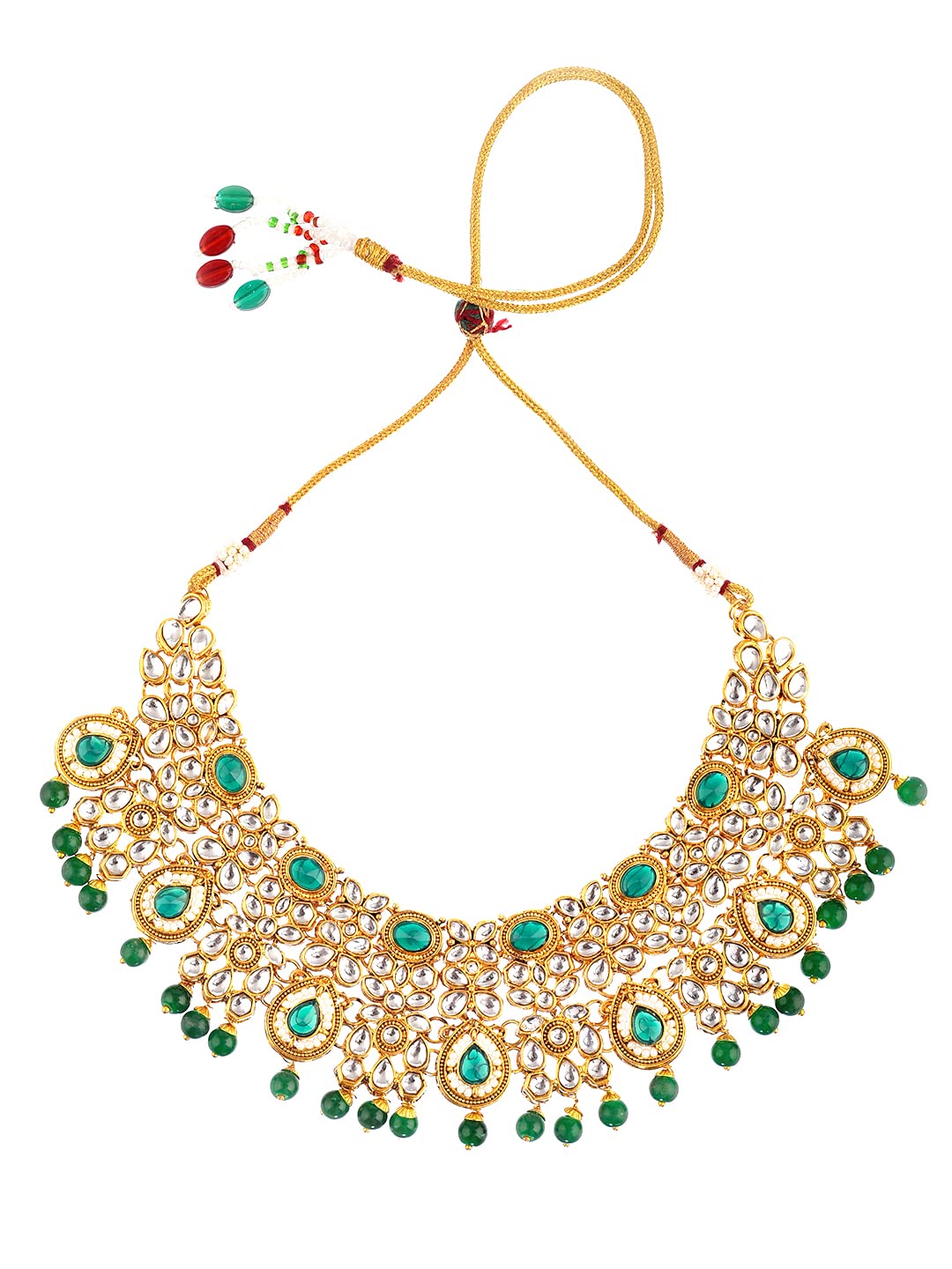Yellow Chimes Gold-Plated Necklace Set Kundan Studded Design Green Stone-Studded Necklace Set For Women & Girls