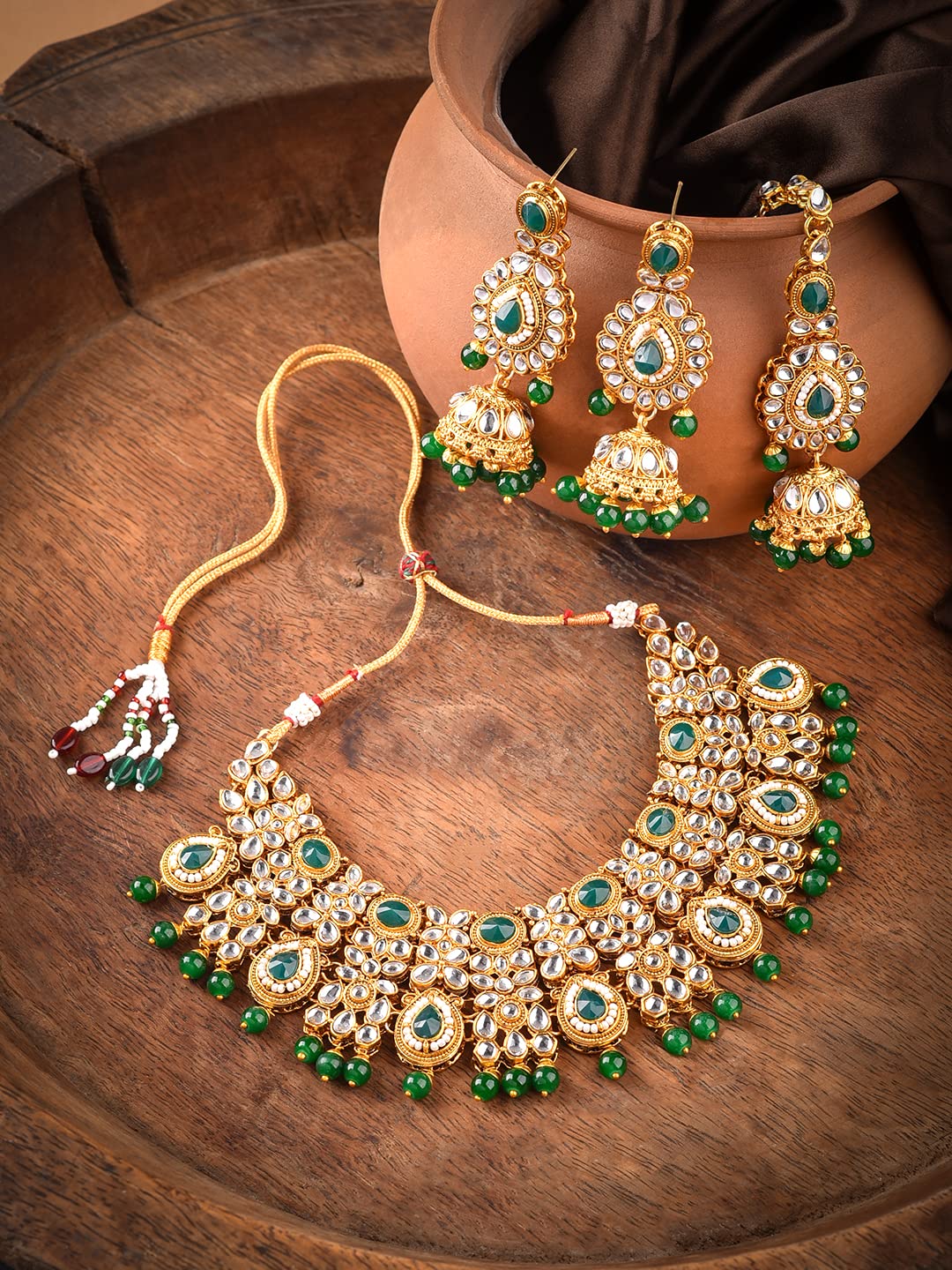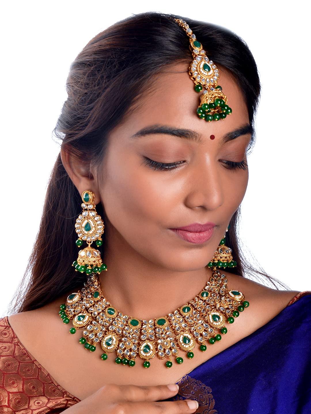 - Comprehensive Set: The set includes a necklace, earrings, and a mangtika – a complete jewelry solution for your special moments.