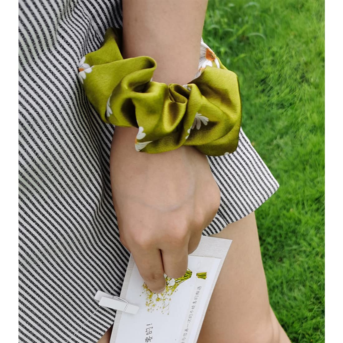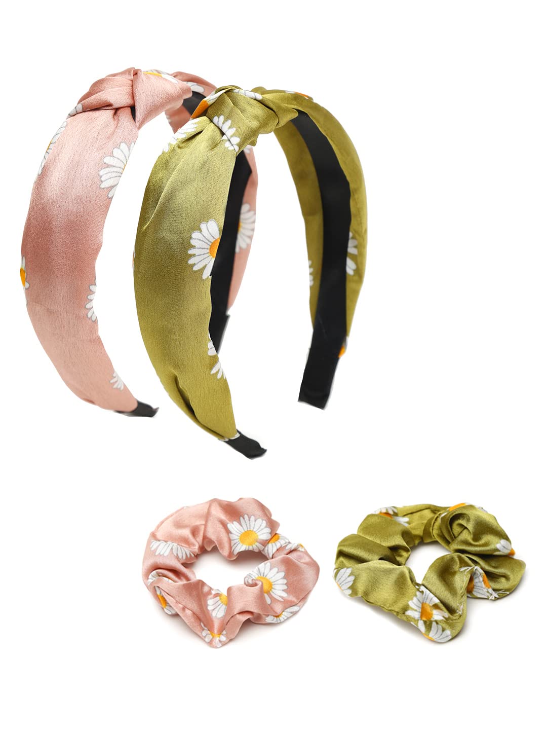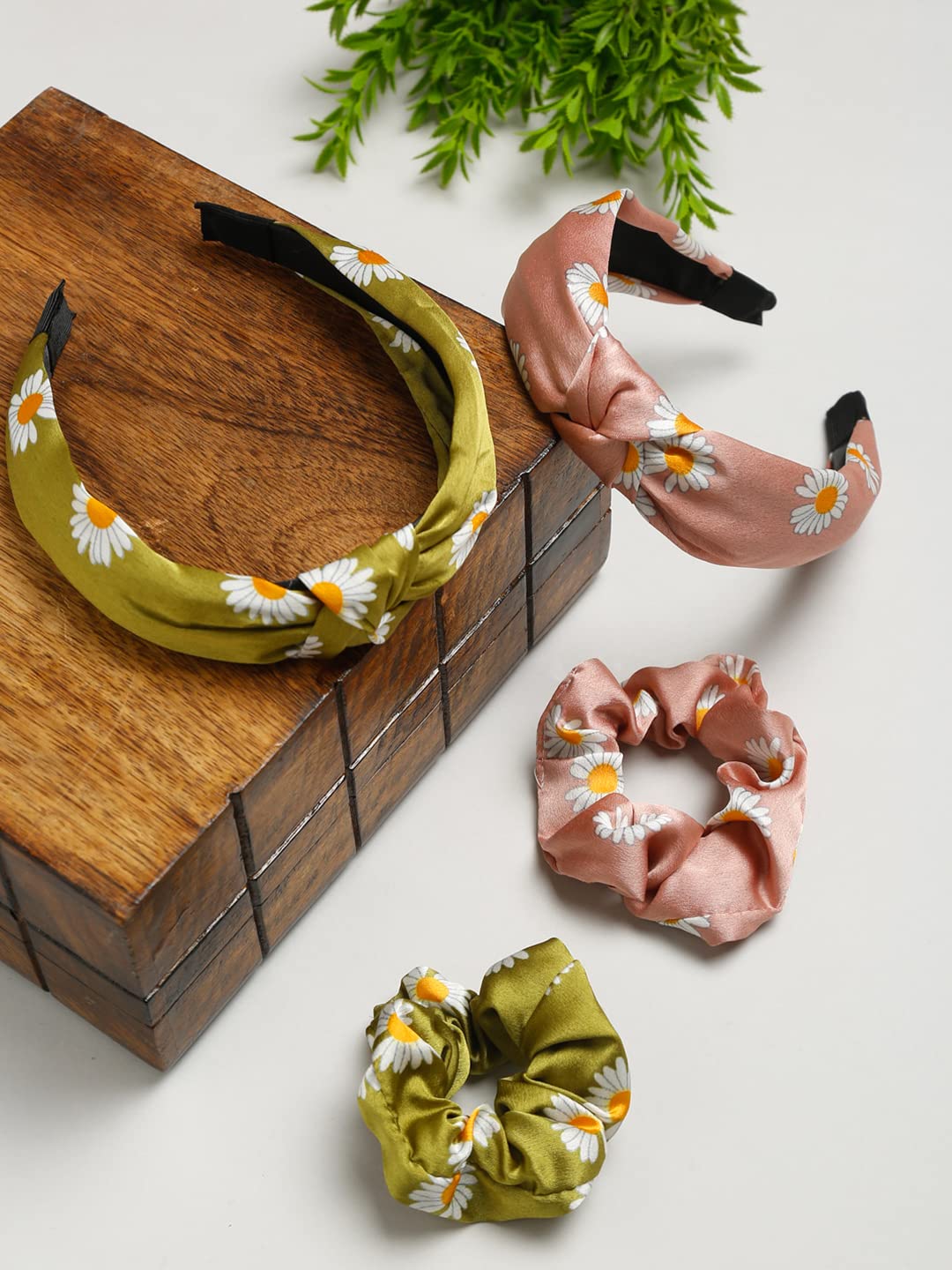 Yellow Chimes Hair Band for Girls Women Hair Accessories for Girls 2 Pcs Hairband & Scrunchies Set For Women Floral Printed 2 Pcs Satin Scrunchies Head Bands for Girls Hair Ties Head Band for Girls Gift For Women & Girls