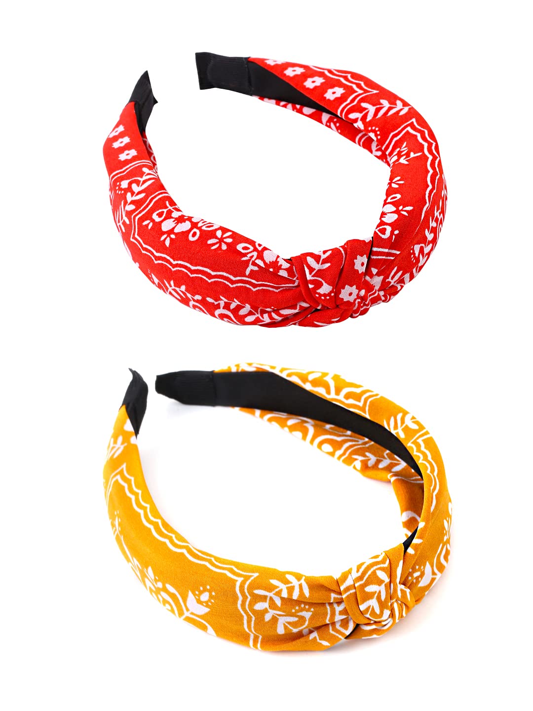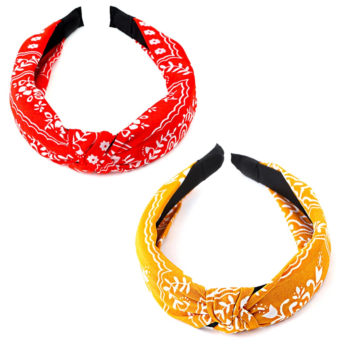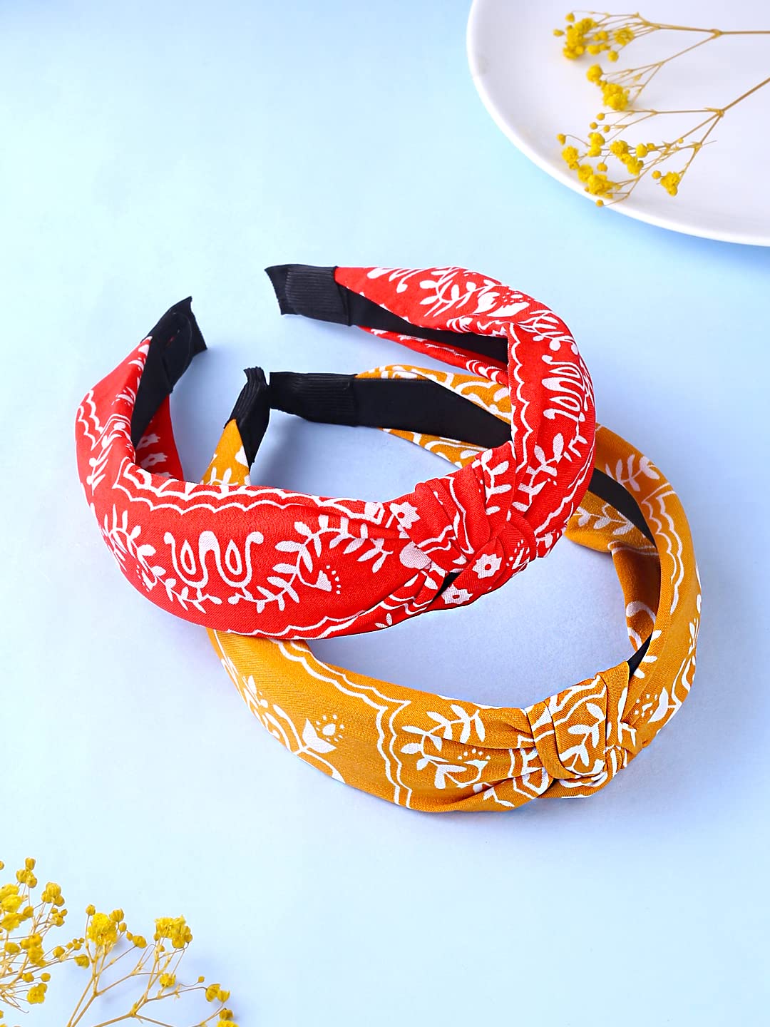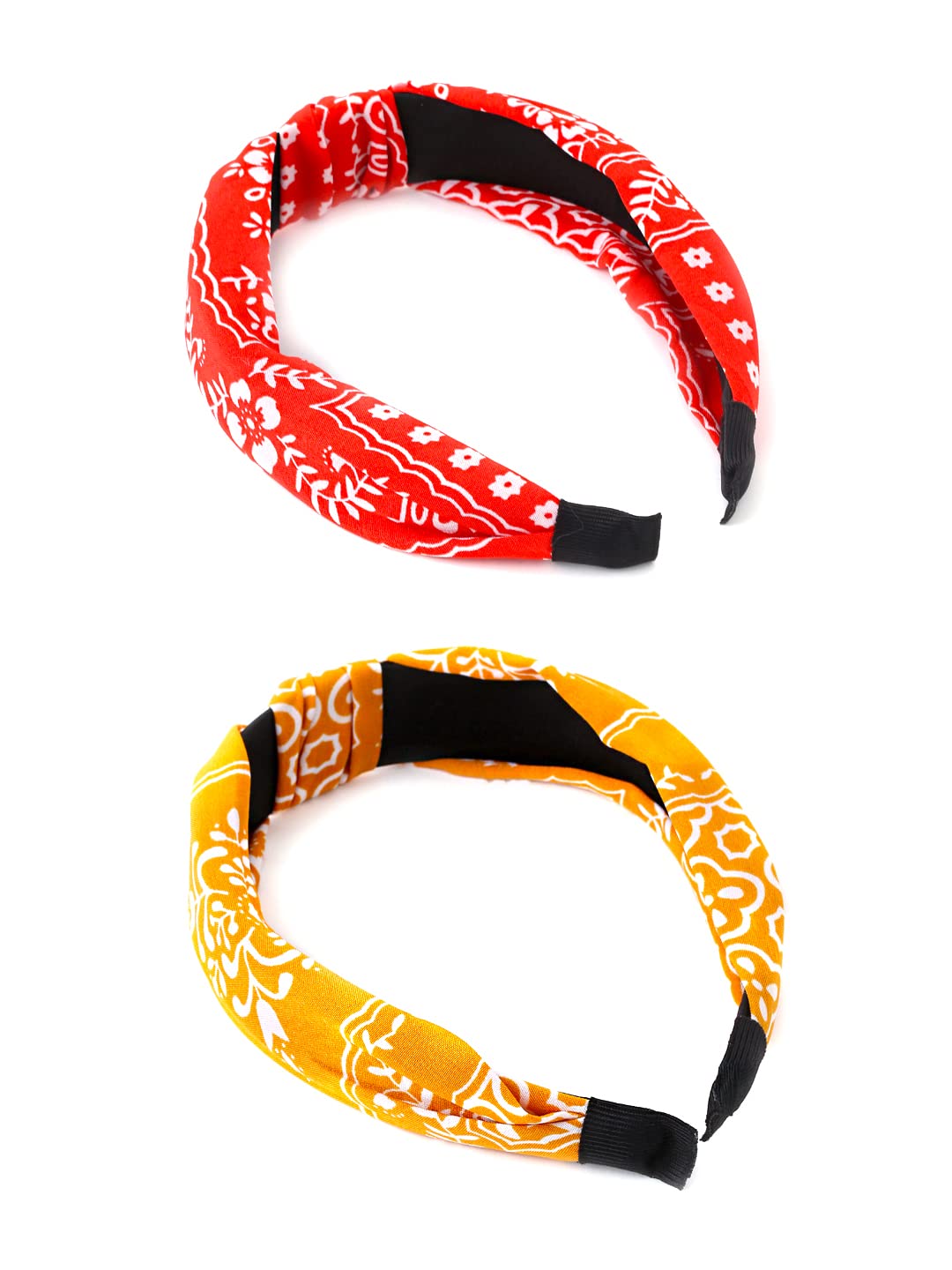 Yellow Chimes Hair Band for Women Girls Hair Accessories for Women 2 Pcs Headband for Women Knot Fabric Hair Band for Girls Twist Turban Headband Cross Knot Hair Bands Elastic Hair Accessories for Women