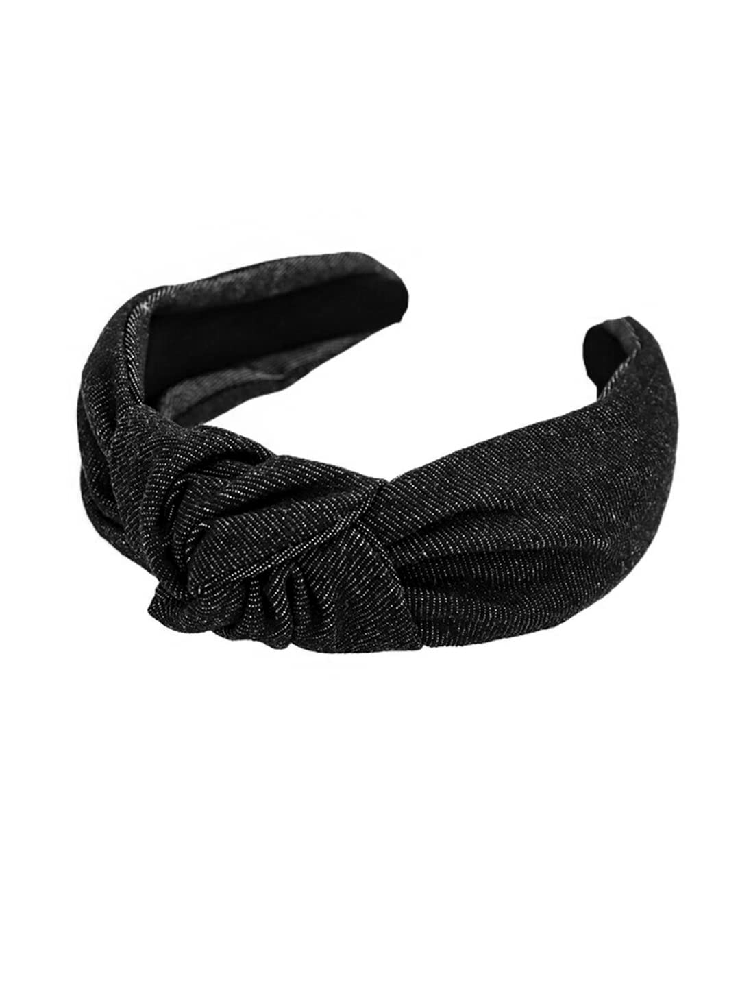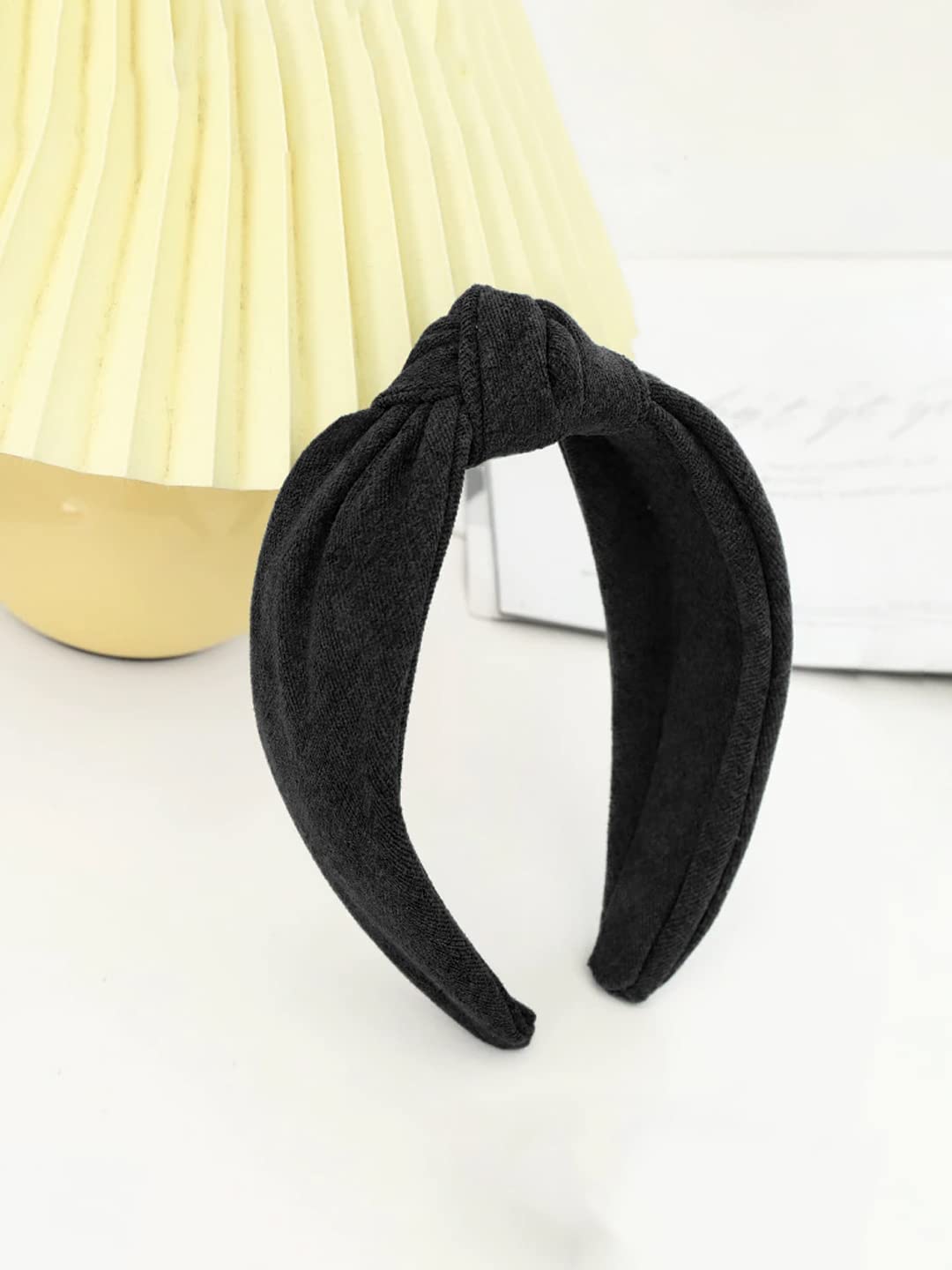 Yellow Chimes Hair Band for Women Girls Hair Accessories for Women Solid Denim Headband for Women Knot Fabric Hair Band for Girls Black Headband Cross Knot Hair Bands Hair Accessories Gift for Women & Girls