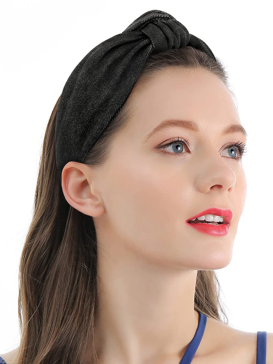 - This black denim headband for women is made of denim fabric and elastic plastic headbands. This denim head band for girls very good elasticity, stretchability, and is comfortable to wear, does not damage the hair, and is not easy to slip off.It is the perfect ideal for women and girls Hair accessories.