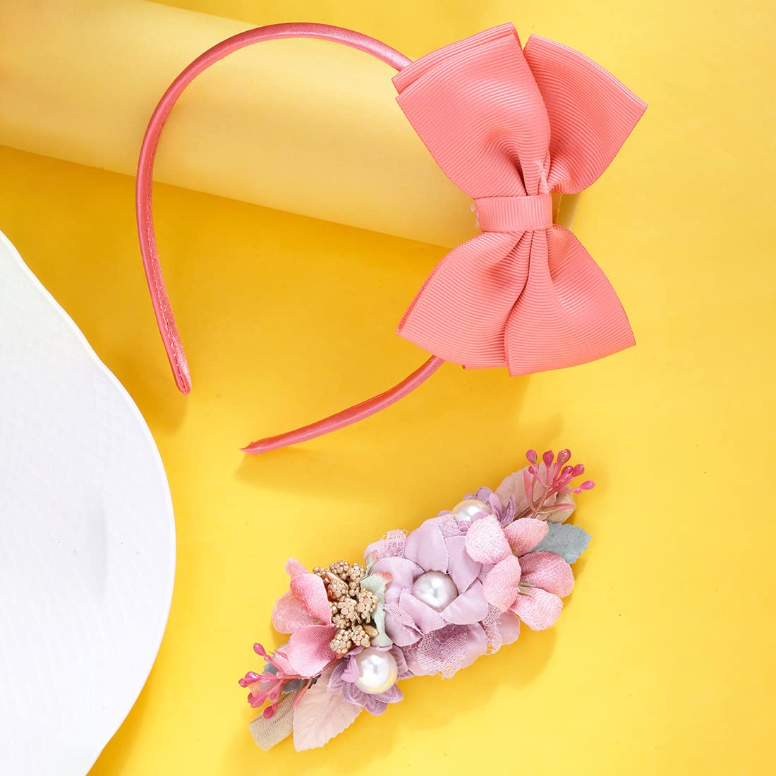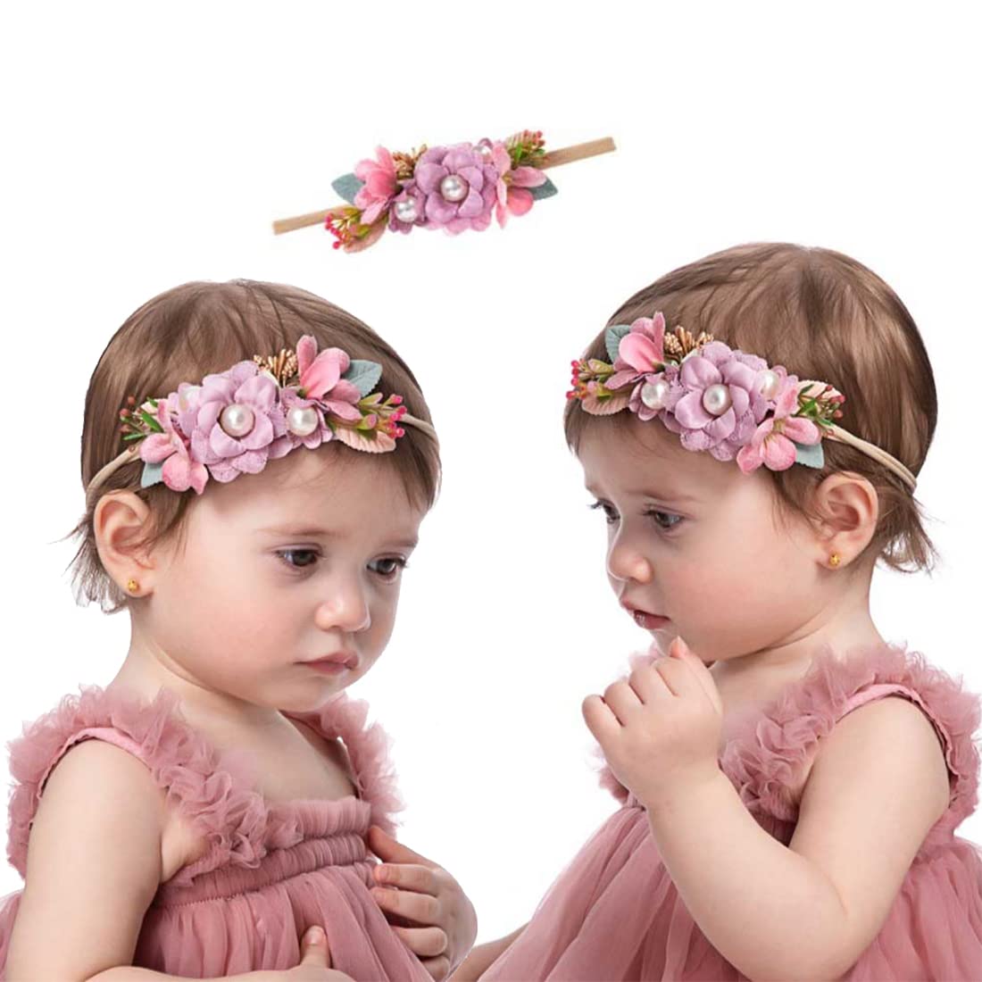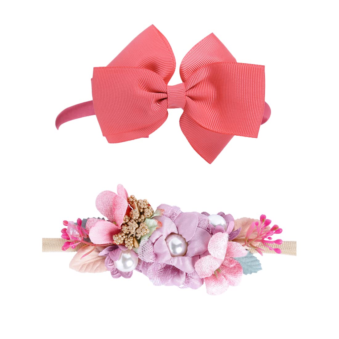 - Beautiful hand crafted Korean style fabric Hair Band for girls,Set of 2 pcs kids hair accessories for girls floral pink baby hair band .The Bow Hairbands are covered with super soft satin lace to make the child even more attractive.