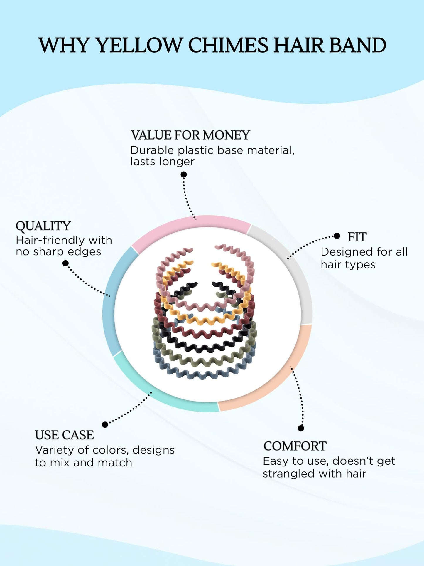Upgrade your hair accessory collection with Yellow Chimes Hair Bands—the perfect blend of style, comfort, and durability!