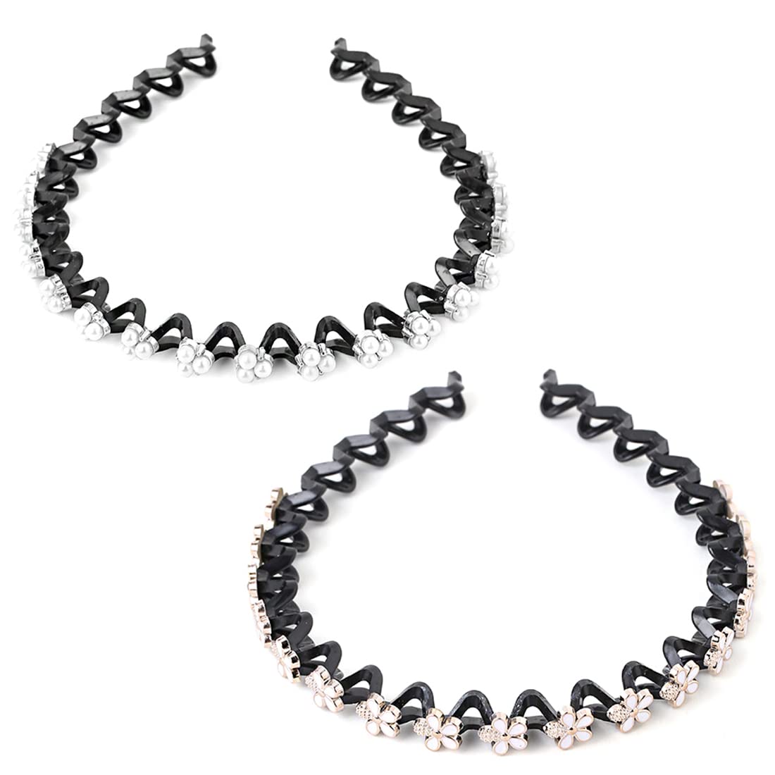 Yellow Chimes Hair Bands for Girls & Women Hair Accessories for Women 2 Pcs Hairband for Women Head Band Pearl Headpeice Hairband for Women Birthday Gift for Women & Girls
