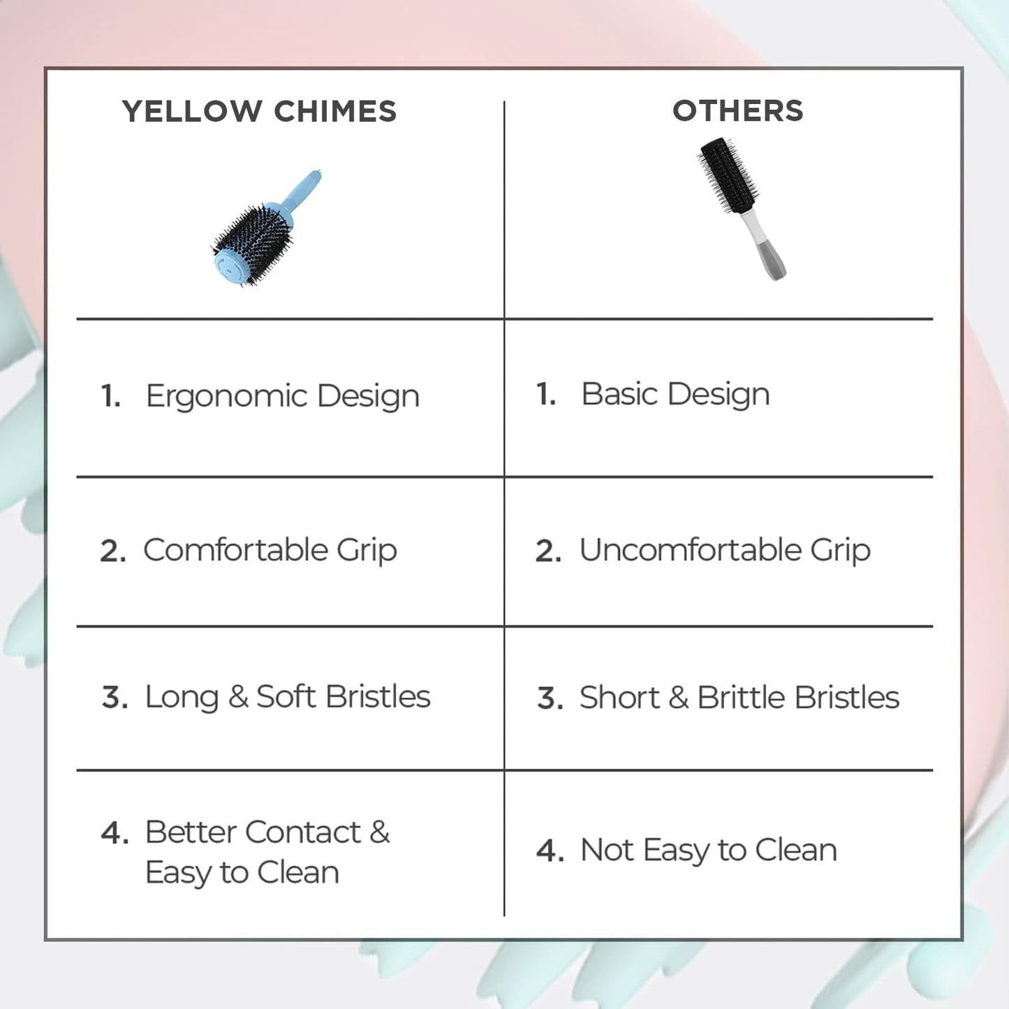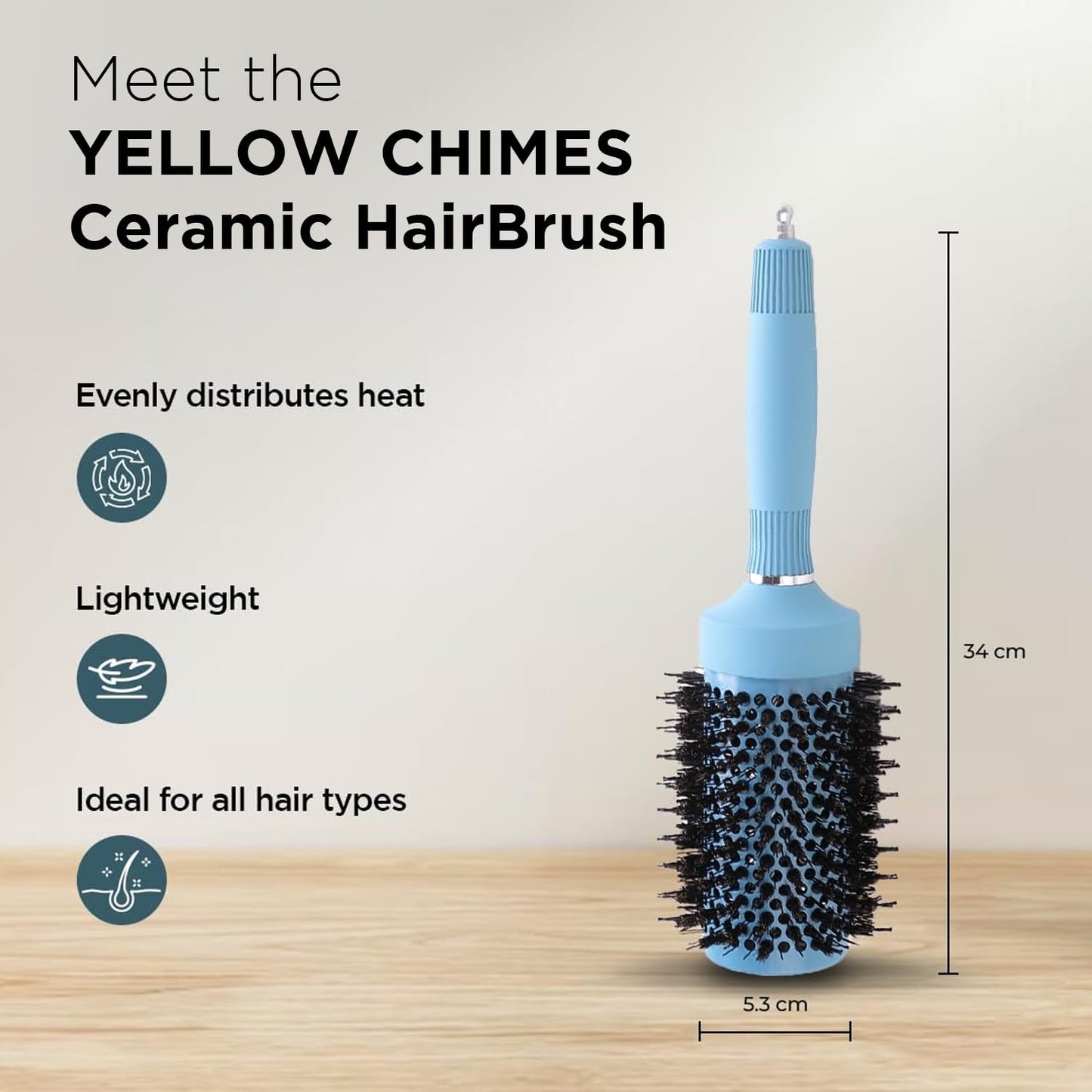 Yellow Chimes Hair Brush with Ion-Infused Thermal Ceramic Technology, Anti-Static Boar Bristles, Additional Styling Tip, Adds Volume and Shine, Blow Drying, Straightening, Curling Round Brush