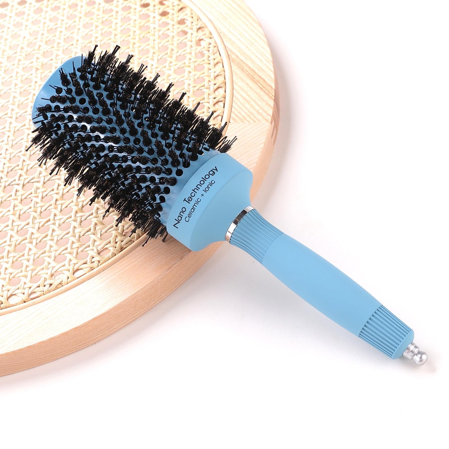 - COMBINATION OF BOAR-NYLON BRISTLES: The brush features a unique combination of boar and nylon bristles. This vented brush design helps detangle your hair effortlessly, leaving it smooth and shiny every time you brush. The boar bristles distribute natural oils throughout your hair, promoting healthier-looking locks.