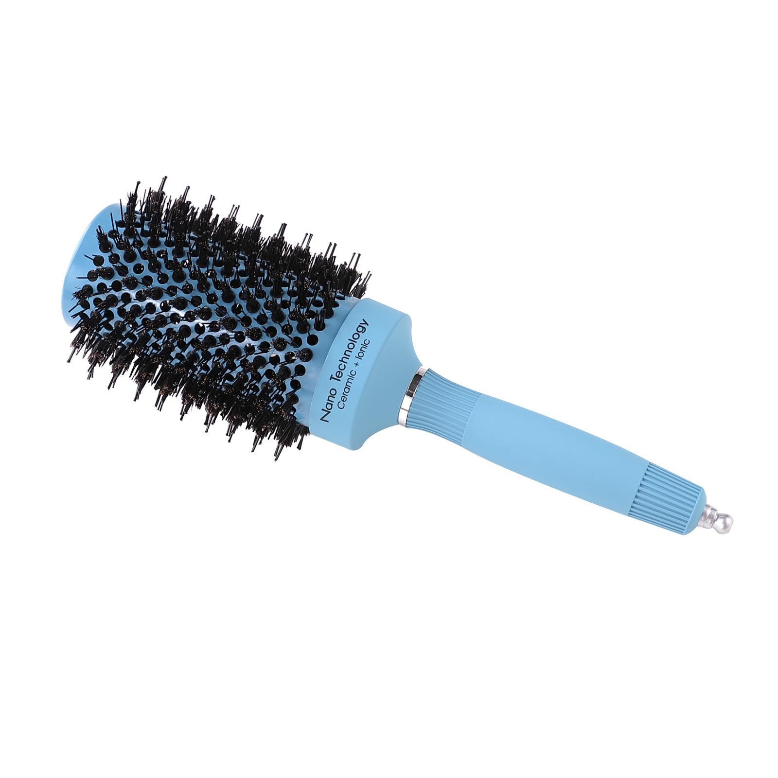 Hair Brush with Ion-Infused Thermal Ceramic Technology, Anti-Static Boar Bristles, Additional Styling Tip, Adds Volume and Shine, Blow Drying, Straightening, Curling Round Brush