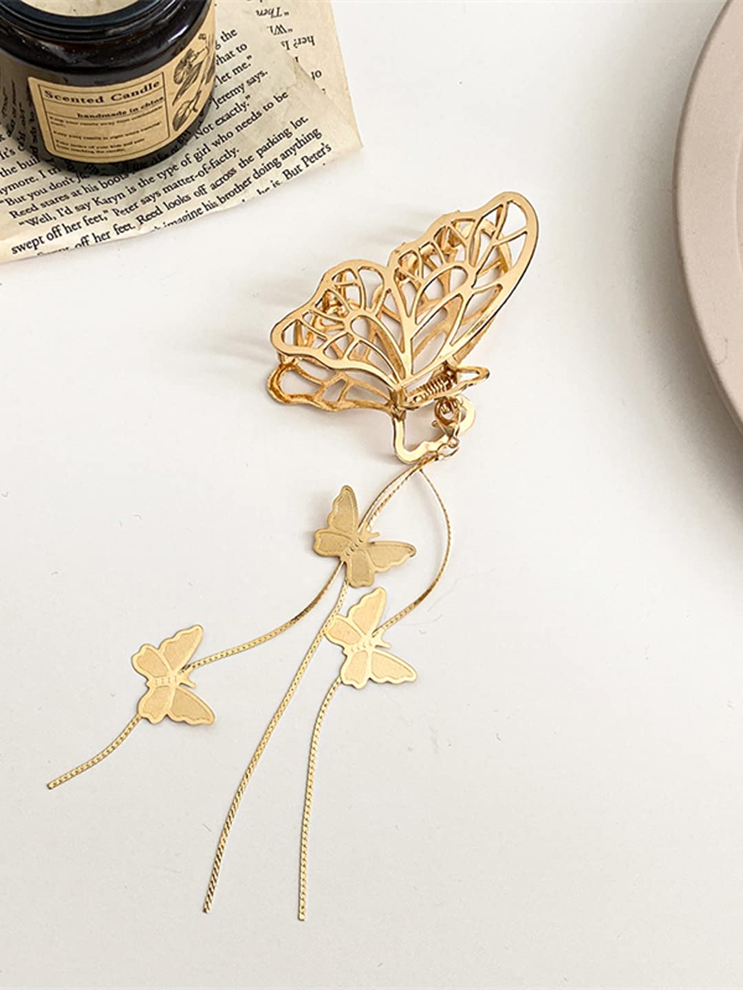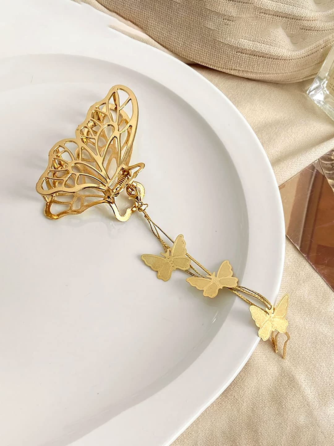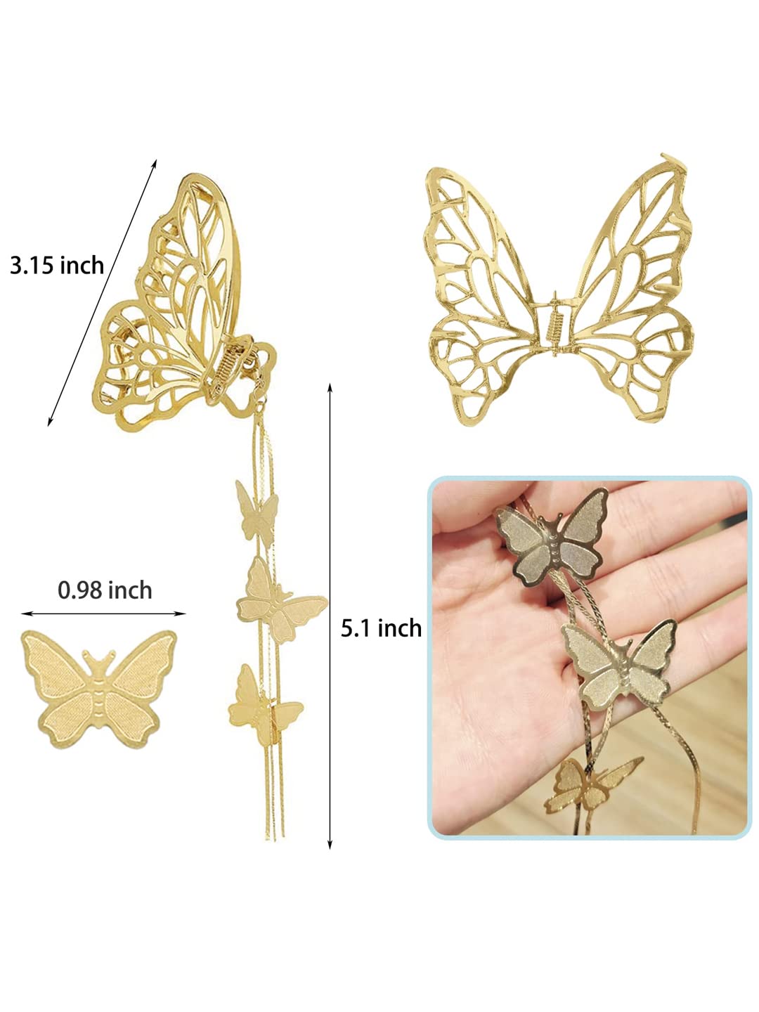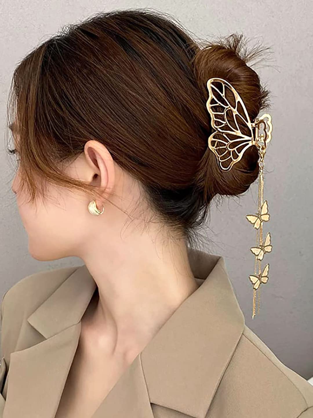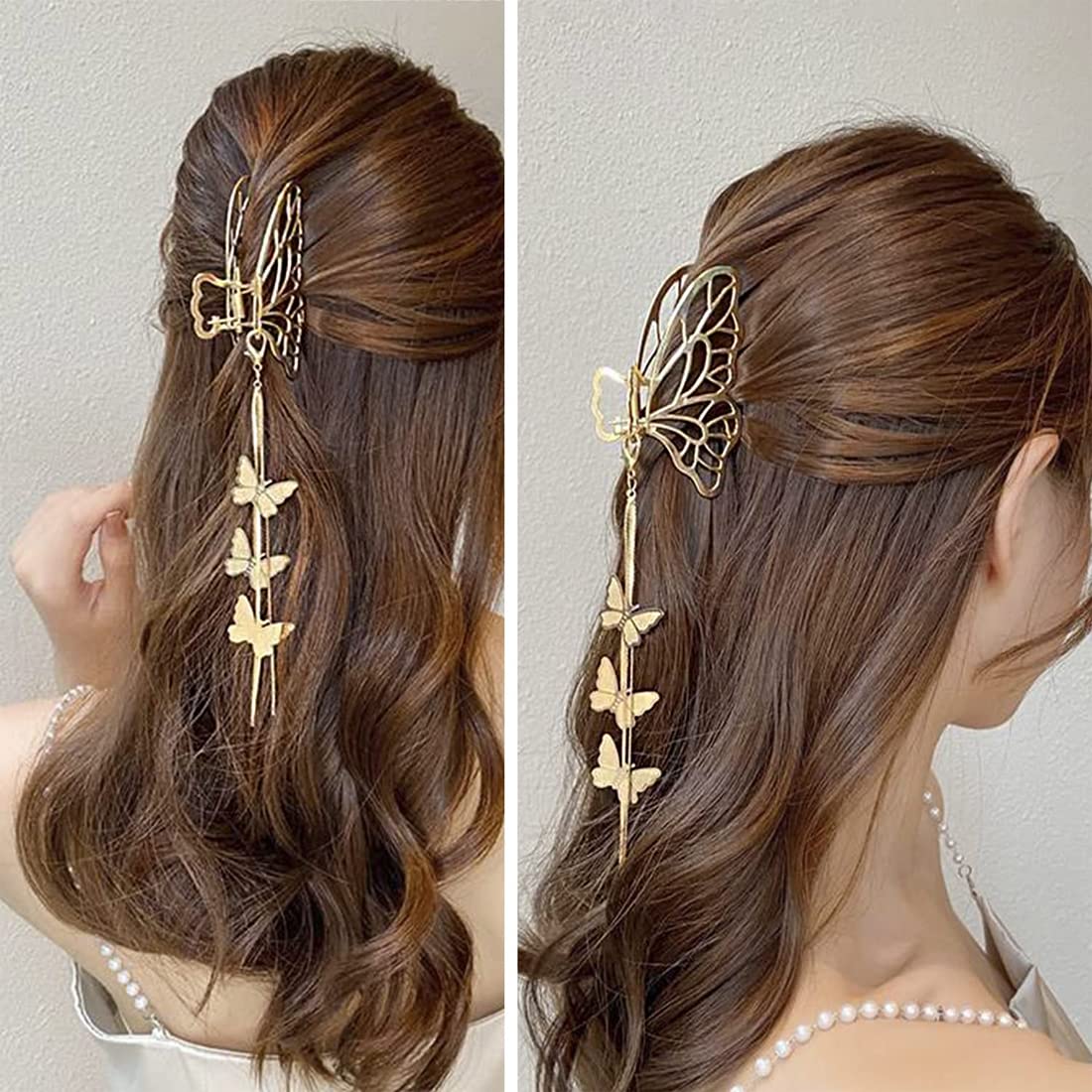 Hair Clip For Women Gold Toned Cluthers Long Hair Claw Clip With Hanging Butterfly Charm Hair Clutch For Women and Girls