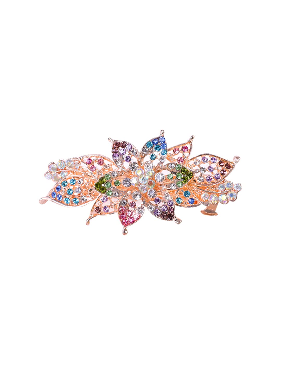 - Multicolor and gold-toned floral design french barrette. A must have piece in your fashion wardrobe. French barrette clips are classic, they never go out of style, and let you design your hairstyle in many ways you want.