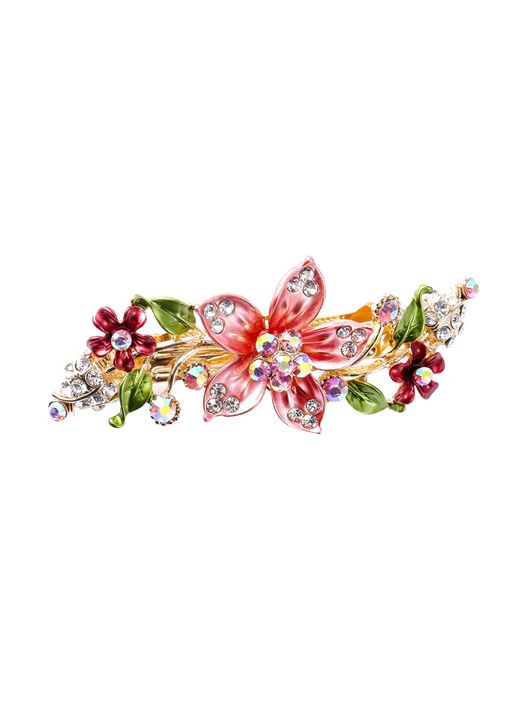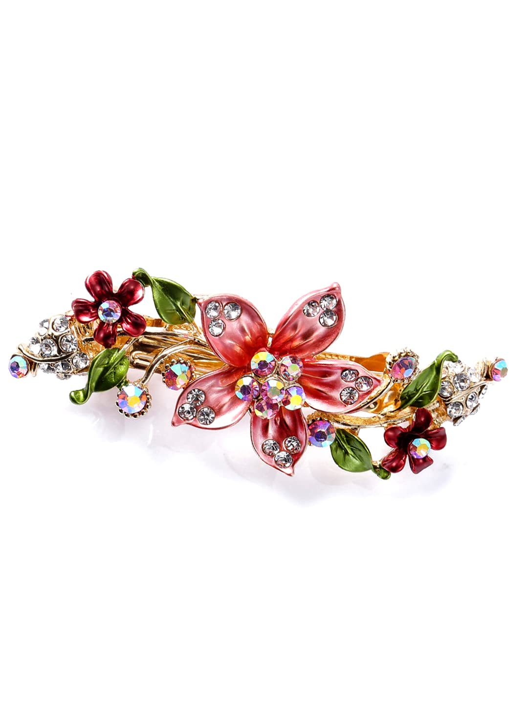 - Red and gold-toned floral design Enameled floral french barrette for women for girls floral hair accessories. A must have piece in your fashion wardrobe. French barrette clips are classic, they never go out of style, and let you design your hairstyle in many ways you want.