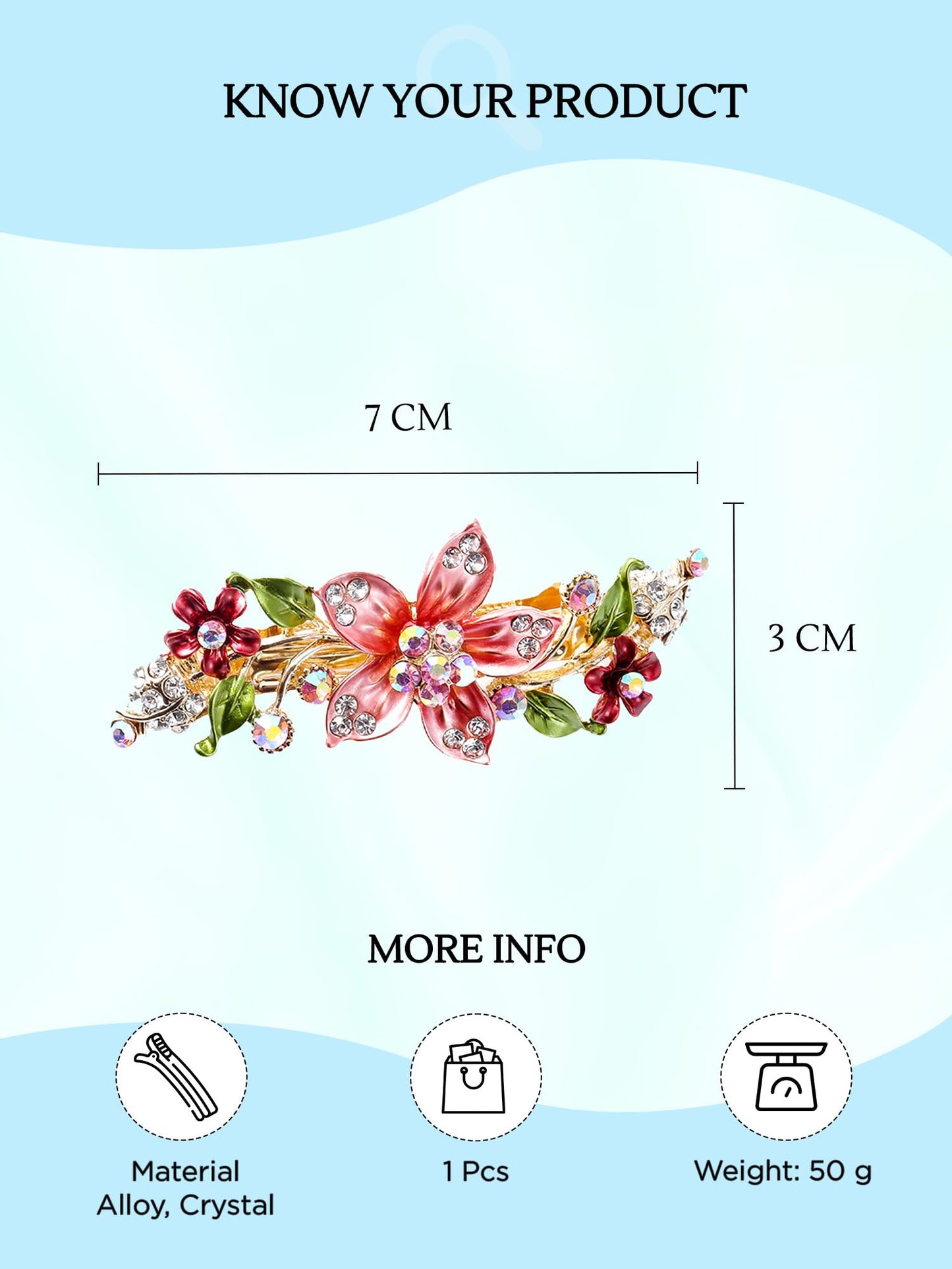 Yellow Chimes Hair Clips for Women Girls Barrette Hair Clips for Women Hair Accessories for Women Enameled Floral Clips for Women Red Crystal French Barrette Hair Clips for Women and Girls Gift For Women & Girls