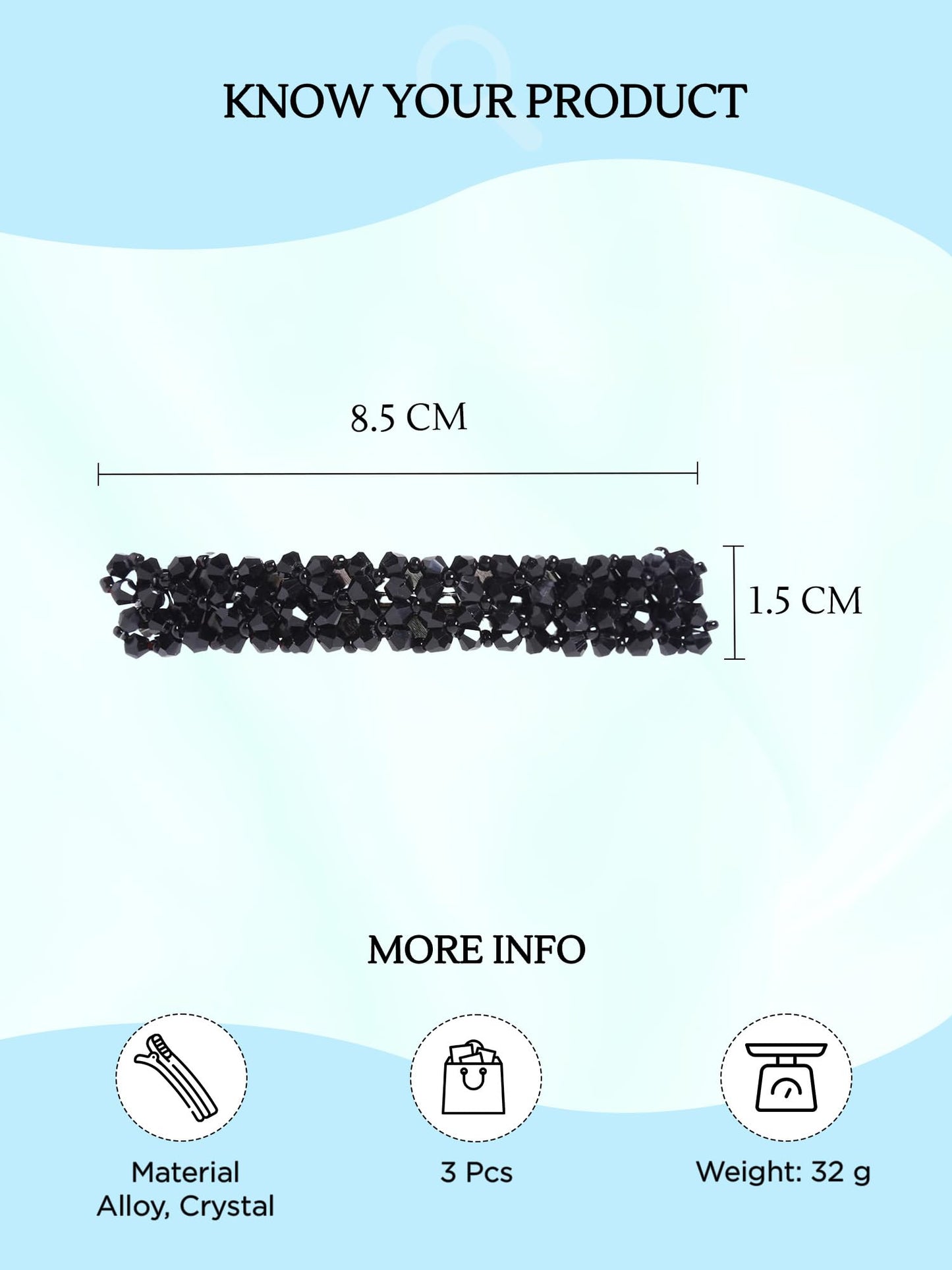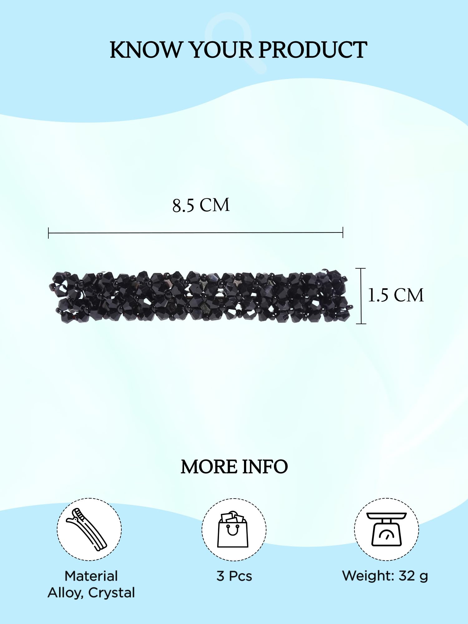 - 3 Units overall. Hair Clip Size- 8.5 CM Length, 1.5 CM Width, Closure- Barrette clip.