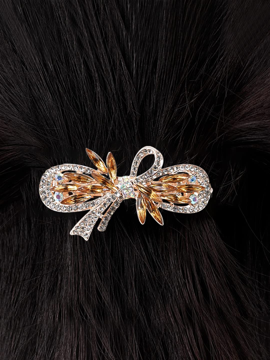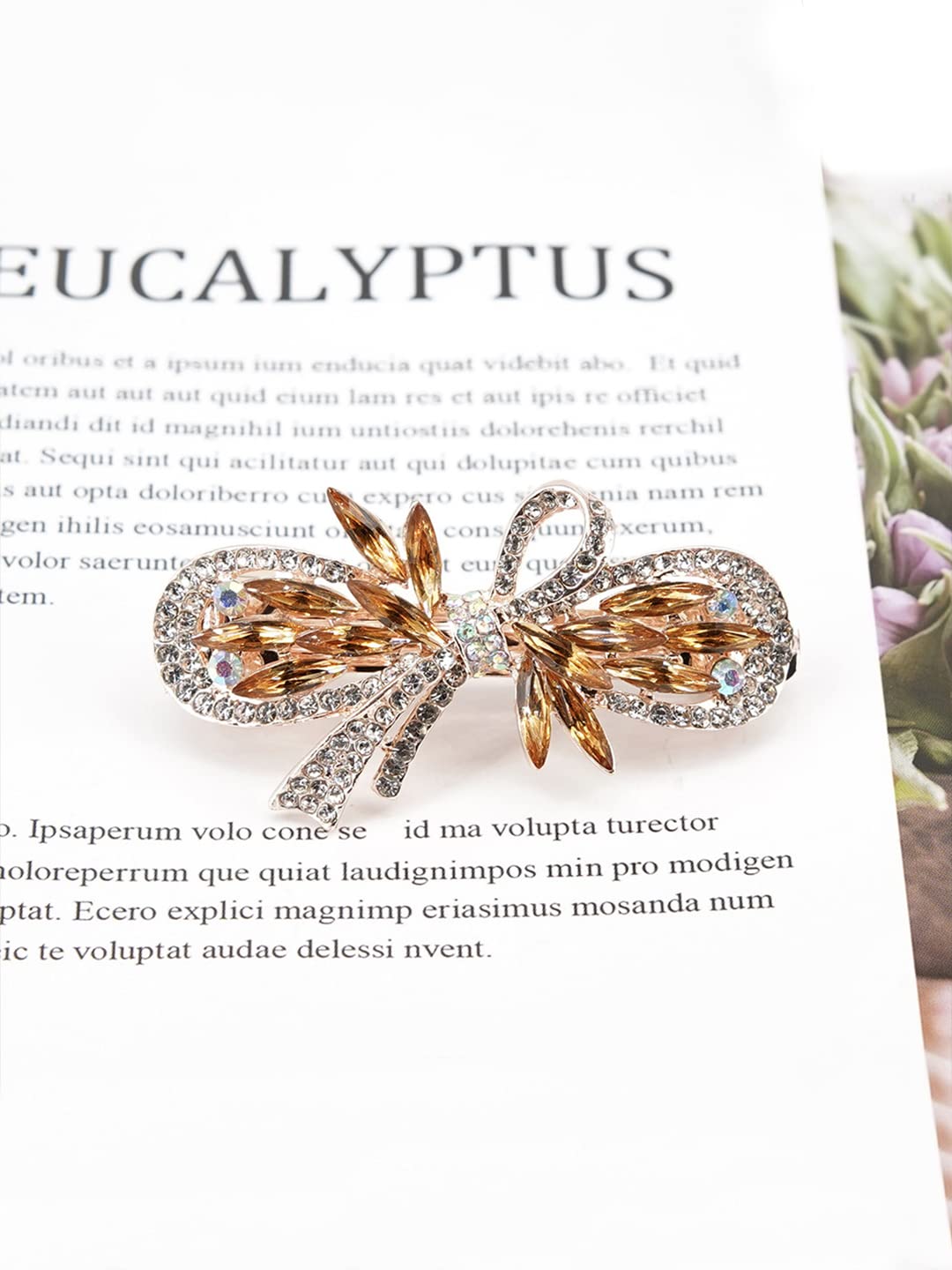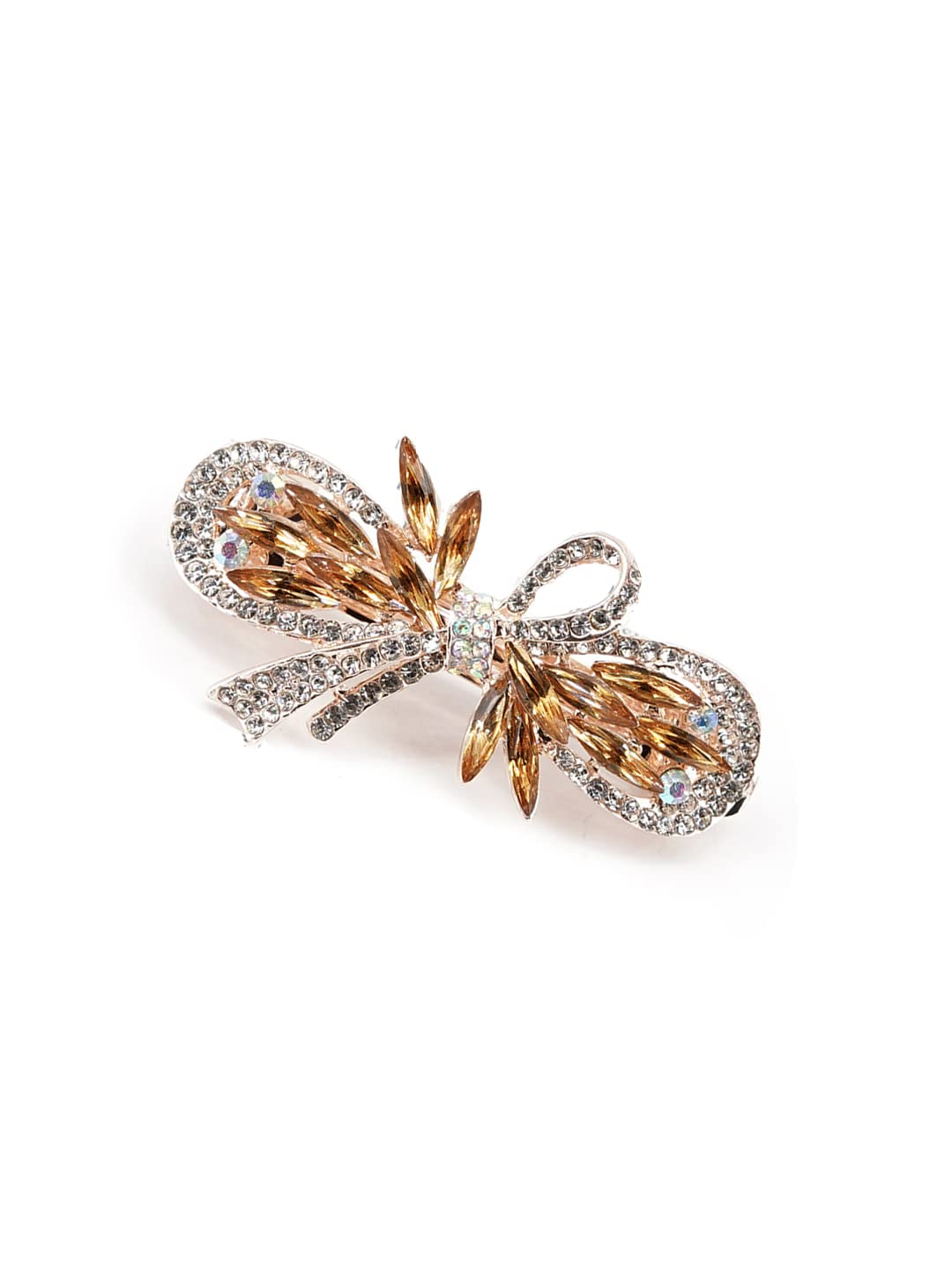- Gold toned Bow clips for women french barrette hair clips for women in gold crystal studded bow hair accessories for women stylish Wear. A must have piece in your fashion wardrobe. French barrette clips are classic, they never go out of style, and let you design your hairstyle in many ways you want.
