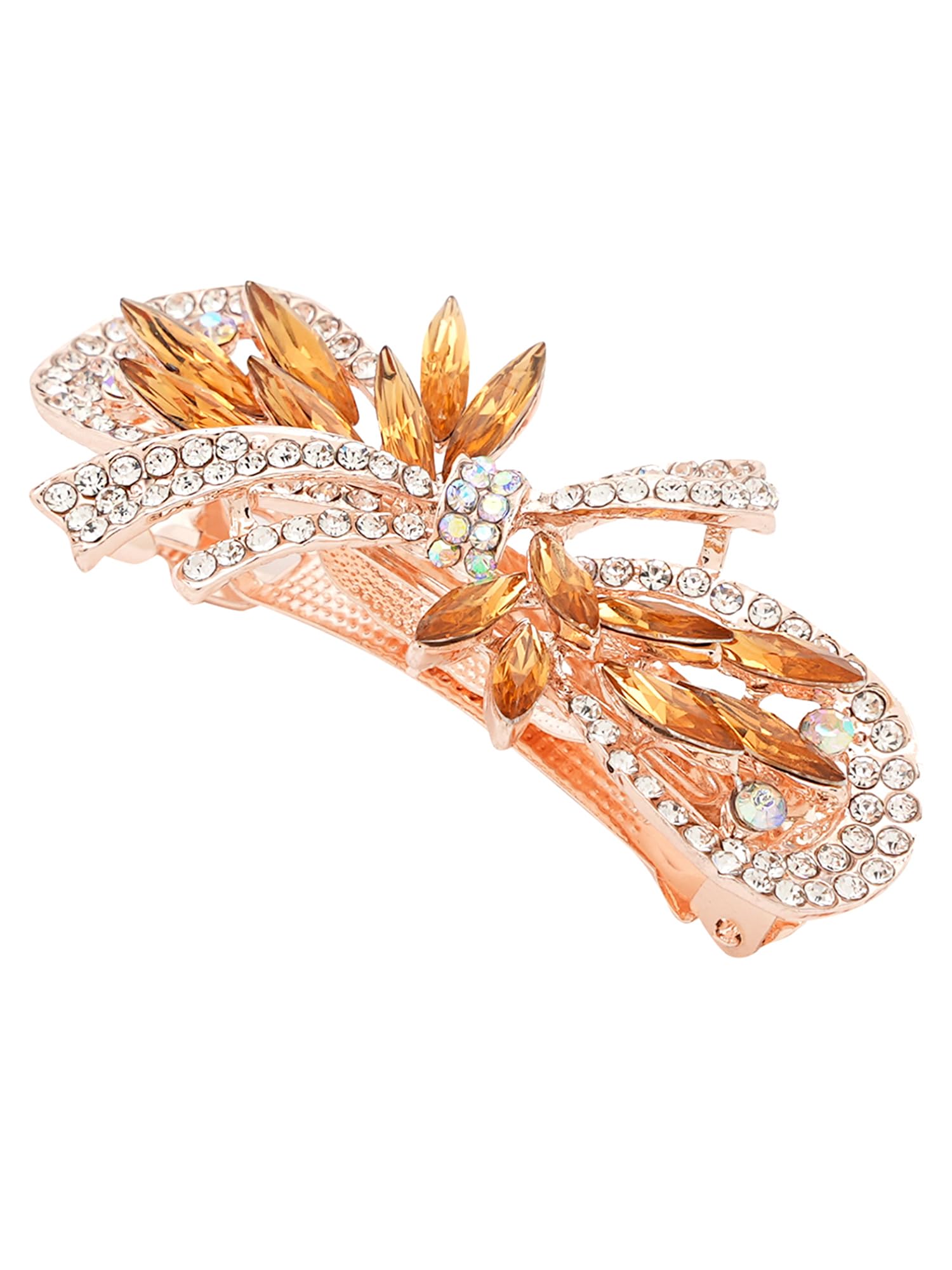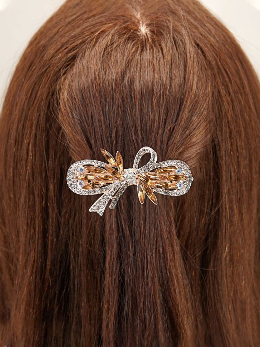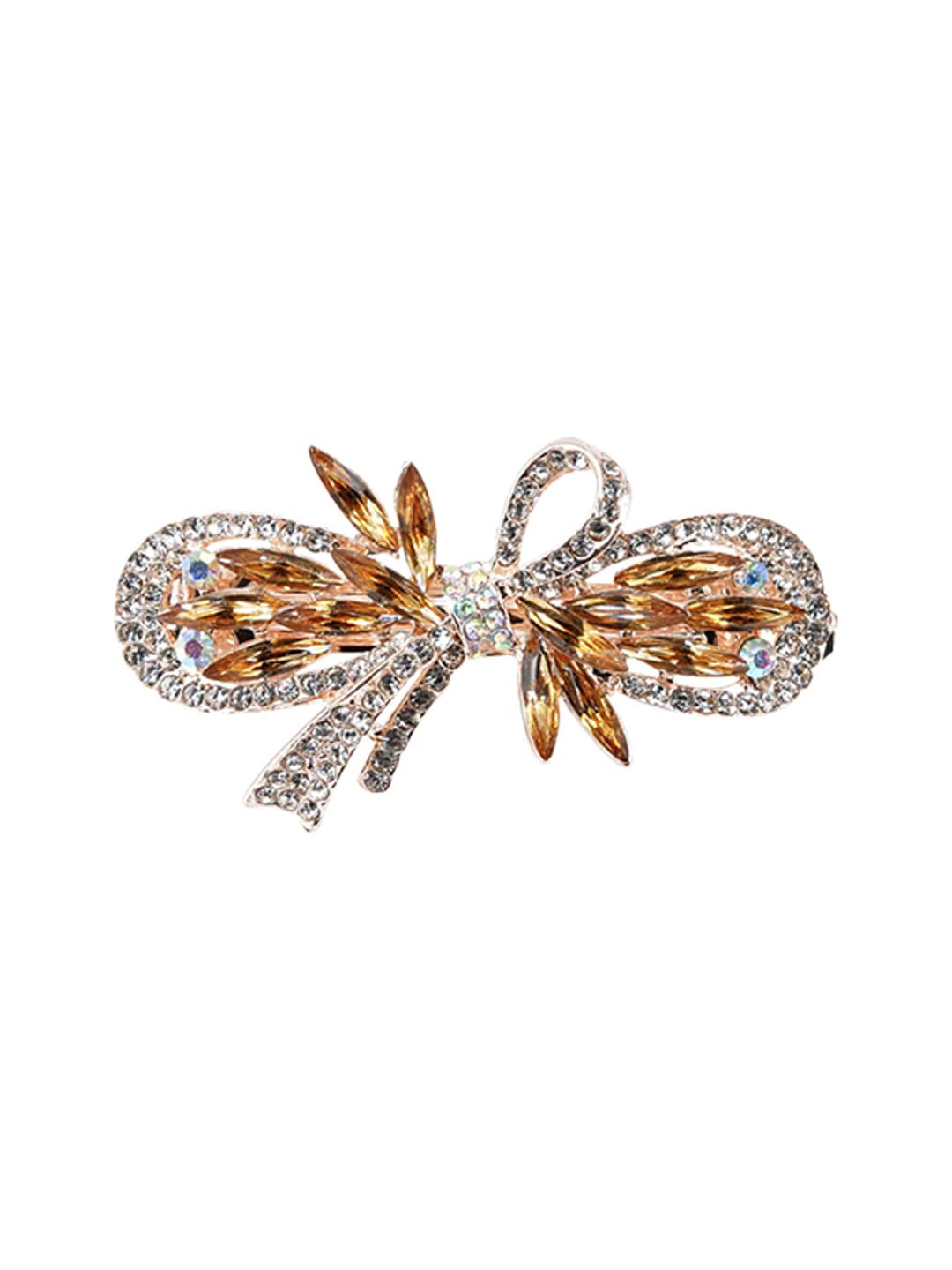 - Gold toned Bow clips for women french barrette hair clips for women in gold crystal studded bow hair accessories for women stylish Wear. A must have piece in your fashion wardrobe. French barrette clips are classic, they never go out of style, and let you design your hairstyle in many ways you want.