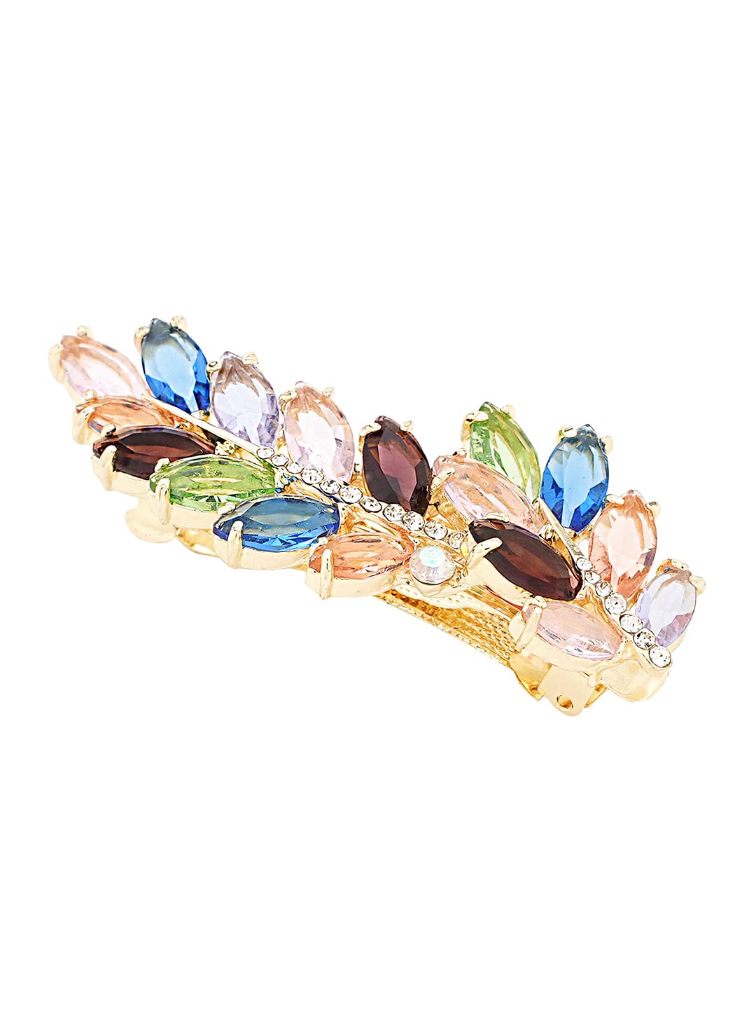 Yellow Chimes Hair Clips for Women Girls Barrette Hair Clips for Women Hair Accessories for Women Floral Clips for Women Blue Crystal French Barrette Hair Clips for Women and Girls Gift For Women & Girls