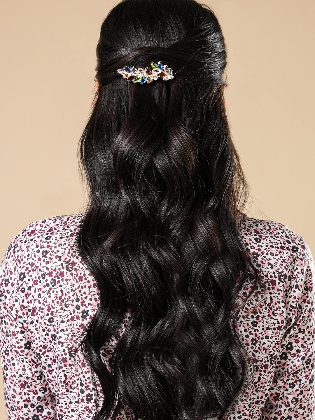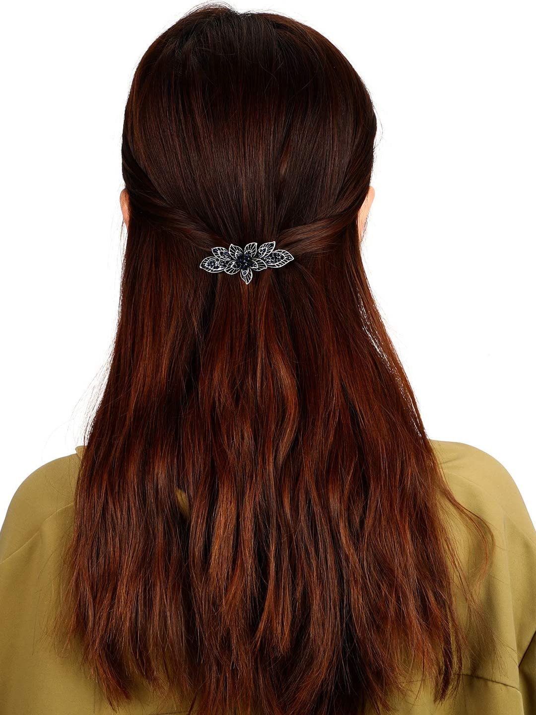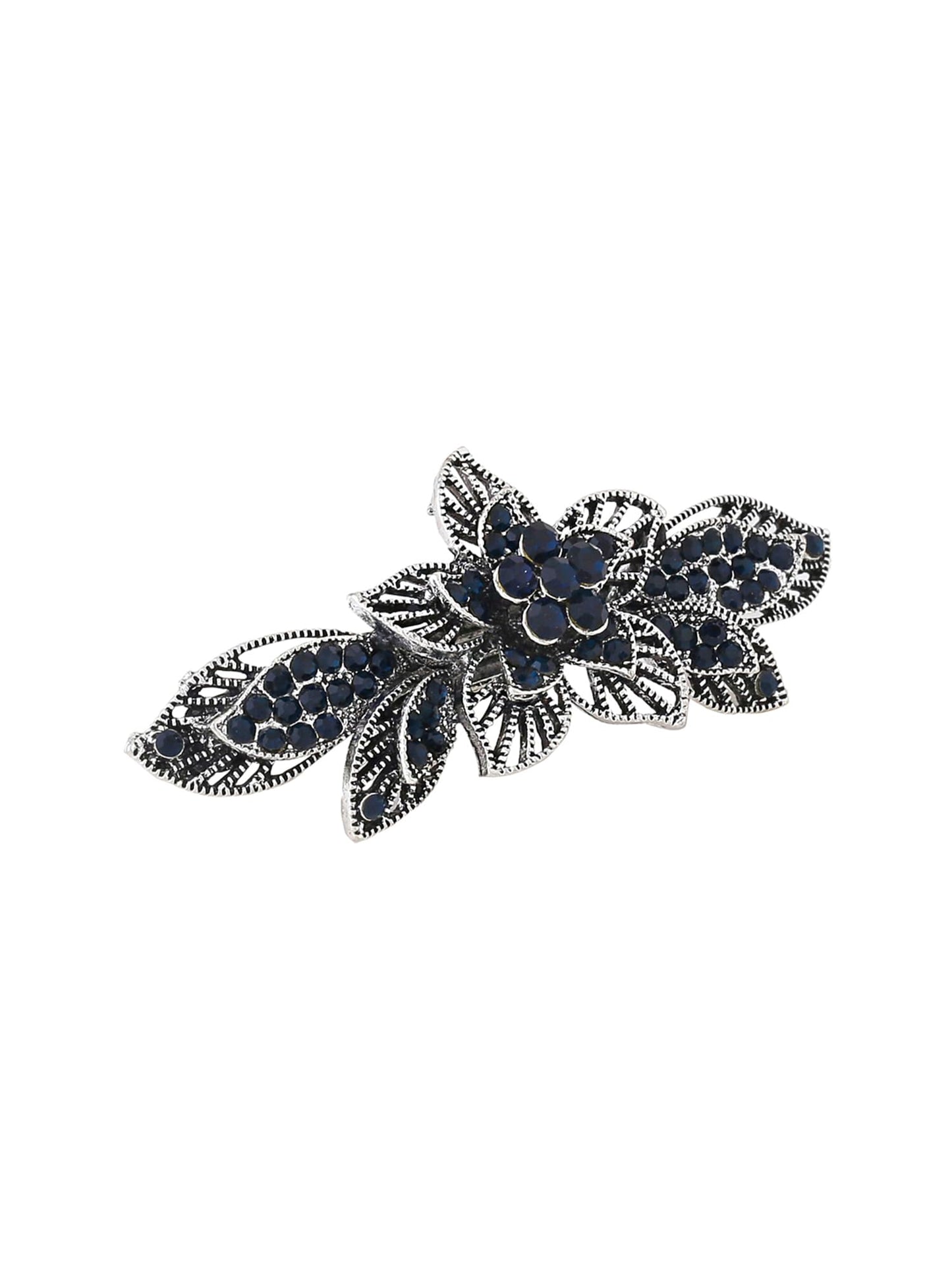 - Blue and Black-toned Floral clips for women french barrette hair clips for women in blue crystal studded Floral hair accessories for women . A must have piece in your fashion wardrobe. French barrette clips are classic, they never go out of style, and let you design your hairstyle in many ways you want.