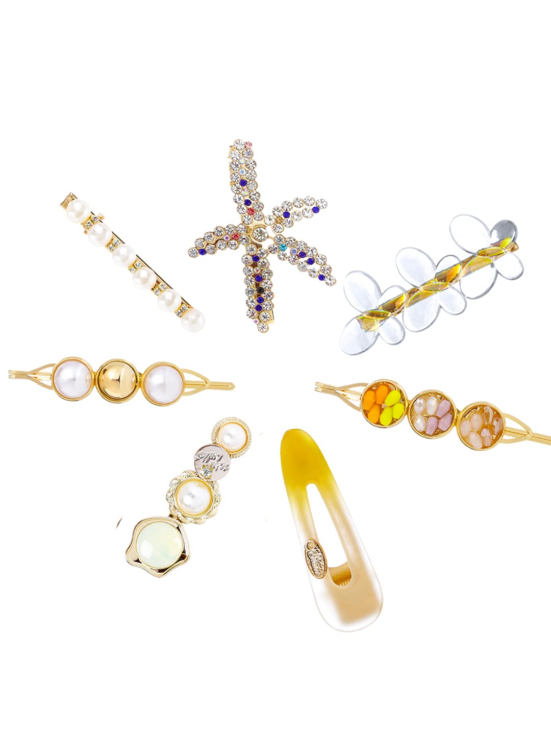 - 7 Style hair accessories for women stylish hair decoration, match different headwear styles decoration, which include Rhinestones and Pearl hair clips for women. These hairclips are very cute, have adorable color and unique stylesThey can match your variety earrings