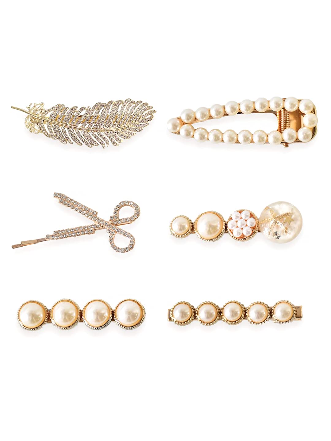 Hair Clips for Women Girls Hair Accessories for Women Golden Hair Clip 6 Pcs Hair Clips for Girls Hairclips Pearl Alligator Clips for Hair Pins for Women and Girls Gift For Women & Girls