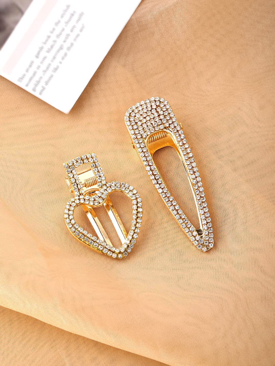 Yellow Chimes Hair Clips for Women Girls Hair Accessories for Women Golden Hair Clip 2 Pcs Hair Clips for Girls Crystal Hairclips Alligator Clips Hair Pins for Women and Girls Gift For Women & Girls