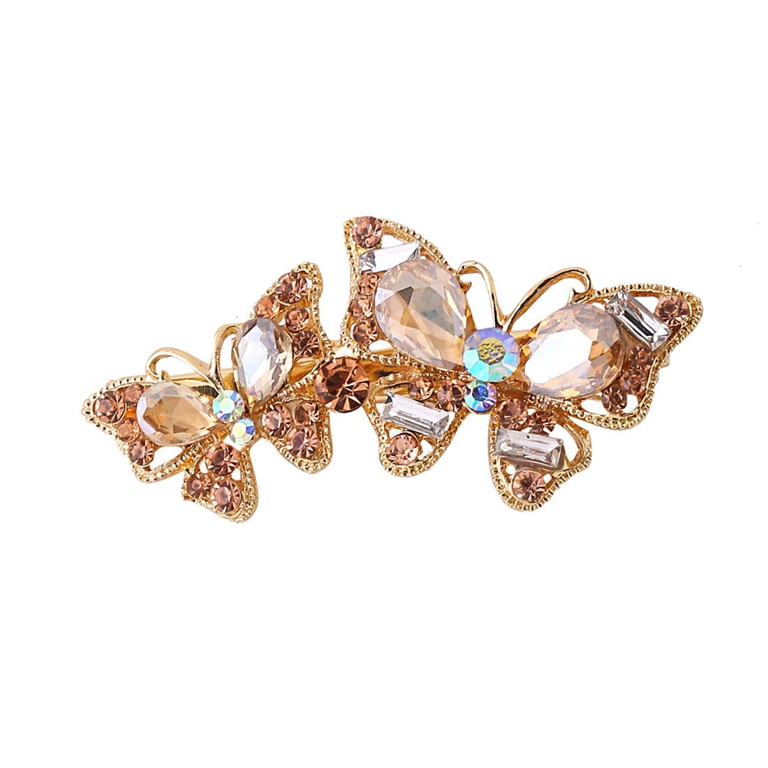 - Golden crystal butterfly alligator hair clips for women hair accessories stylish hair decoration. An alligator clip is used to keep the hair back, off the face. Wear various trendy hairstyles with these trendy clips.A must have piece in your fashion wardrobe. Alligator clips for hair are classic, they never go out of style, and let you design your hairstyle in many ways you want.