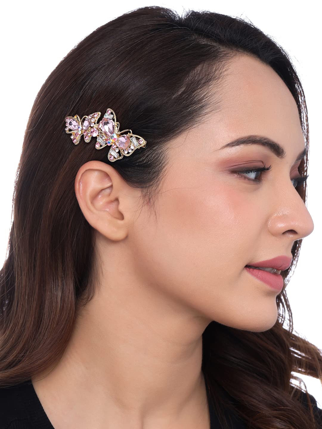 Yellow Chimes Hair Clips for Women Girls Hair Accessories for Women Golden Crystal Hair Clip Butterfly Hair Clips for Girls Hairclips Alligator Clips for Hair Pins for Women and Girls Gift for Women & Girls