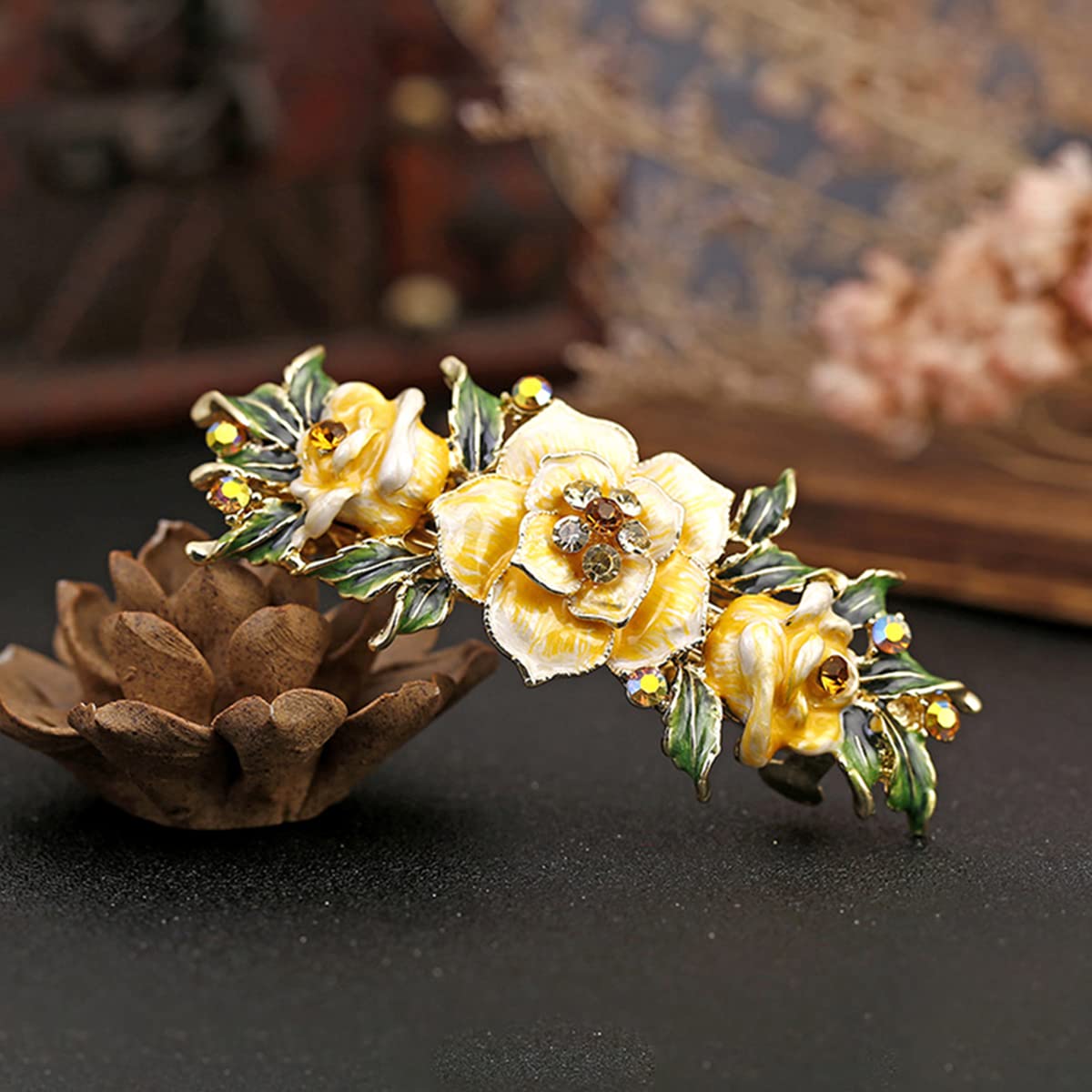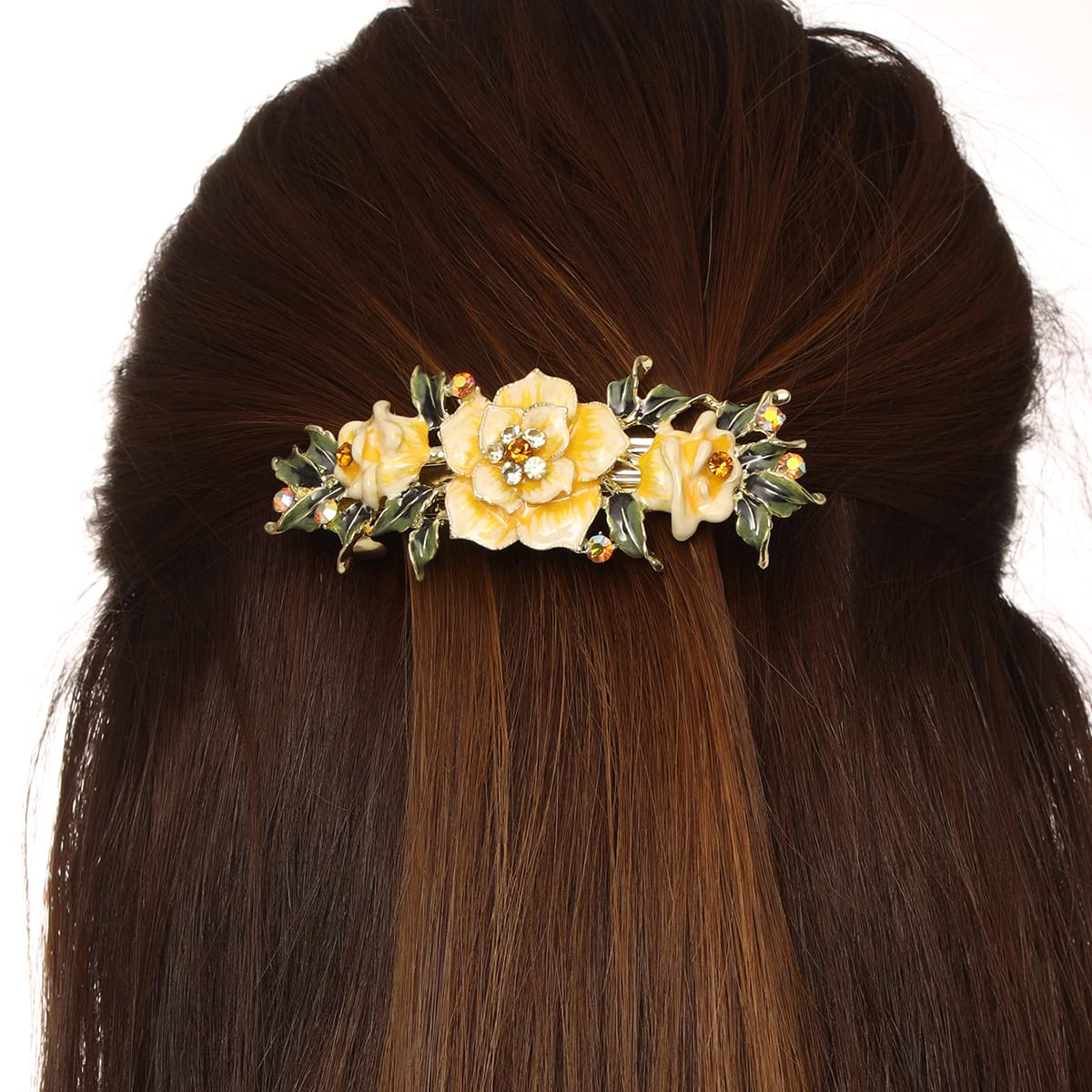 Hair Clips for Women Girls Barrette Hair Clips for Women Hair Accessories for Women Enameled Floral Clips for Women Yellow French Barrette Hair Clips for Women and Girls Gift For Women & Girls