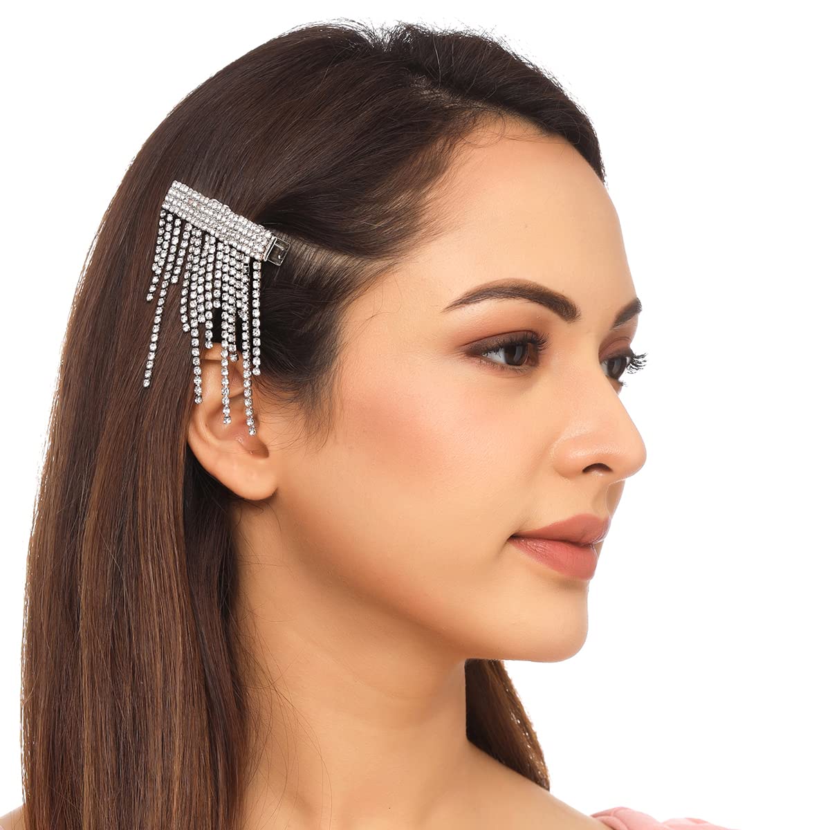 Yellow Chimes Hair Clips for Women Girls Hair Accessories for Women Hair Clip White Crystal Hair Clips for Girls Hairclips Tassels Alligator Clips for Hair Pins for Women and Girls Gift for Women & Girls
