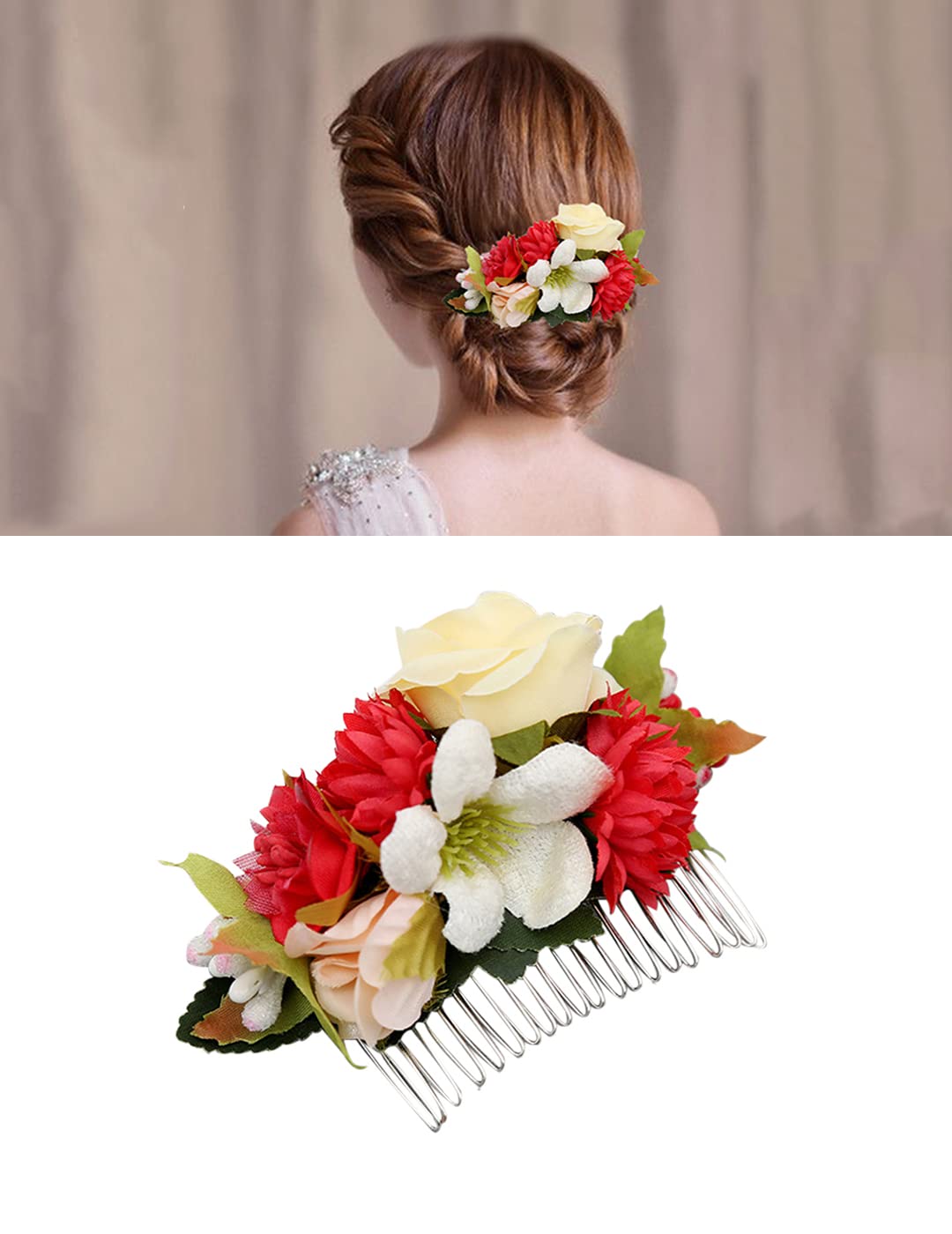 Comb Pin for Women Hair Accessories for Women Floral Hair Pins for Women Artificial Floral Hair Pin Bridal Hair Accessories for Wedding Side Pin/Hair Clip/Juda Pin Accessories for Women