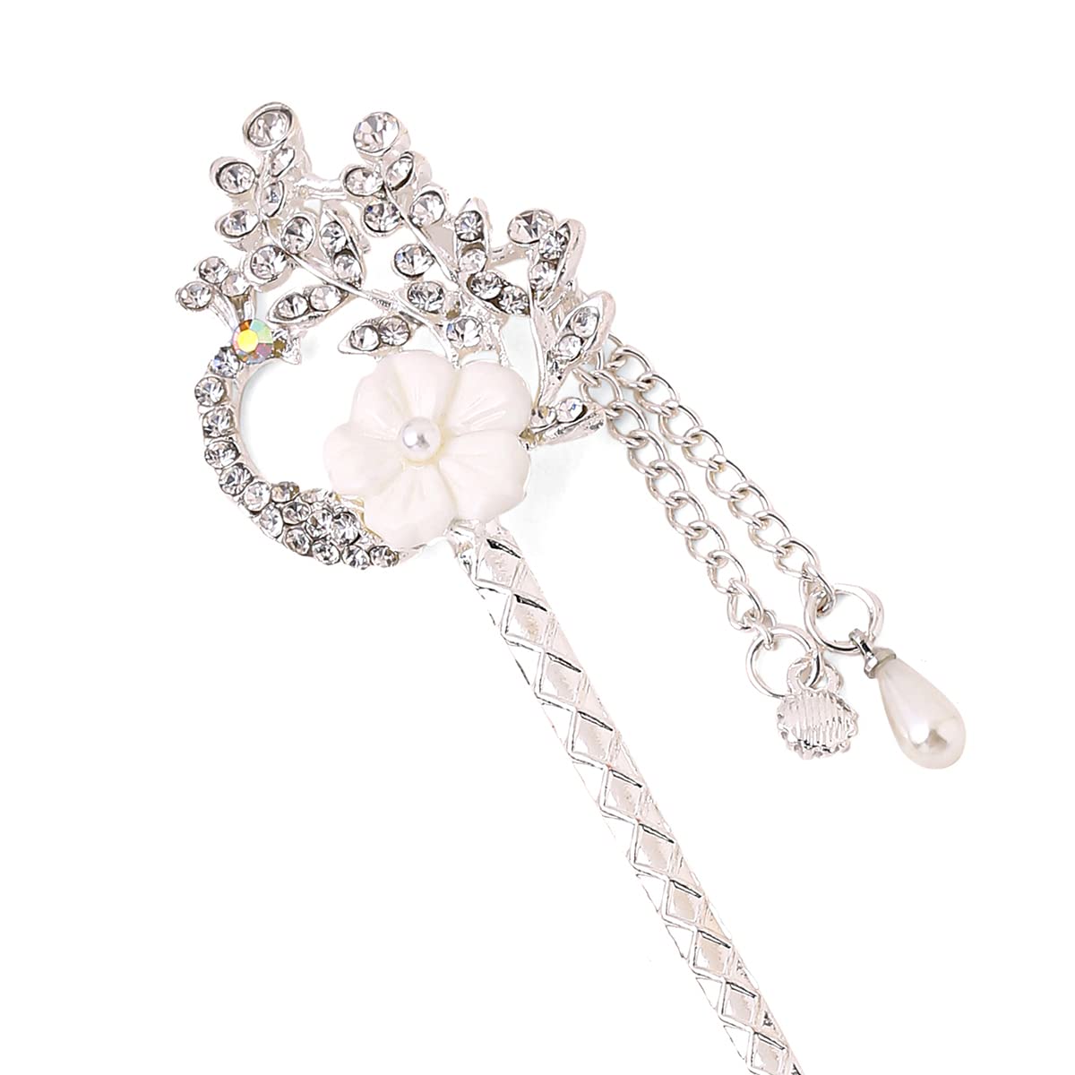 - Pretty Japanese design- This stylish Hair Stick for Bun Hair accessory is a simple hairpin with clear pearl decoration.Package: 1PCS hair clips the hair pins are packed in a plastic box, you can store the hair pins in the plastic box or easy to carry it in bag.