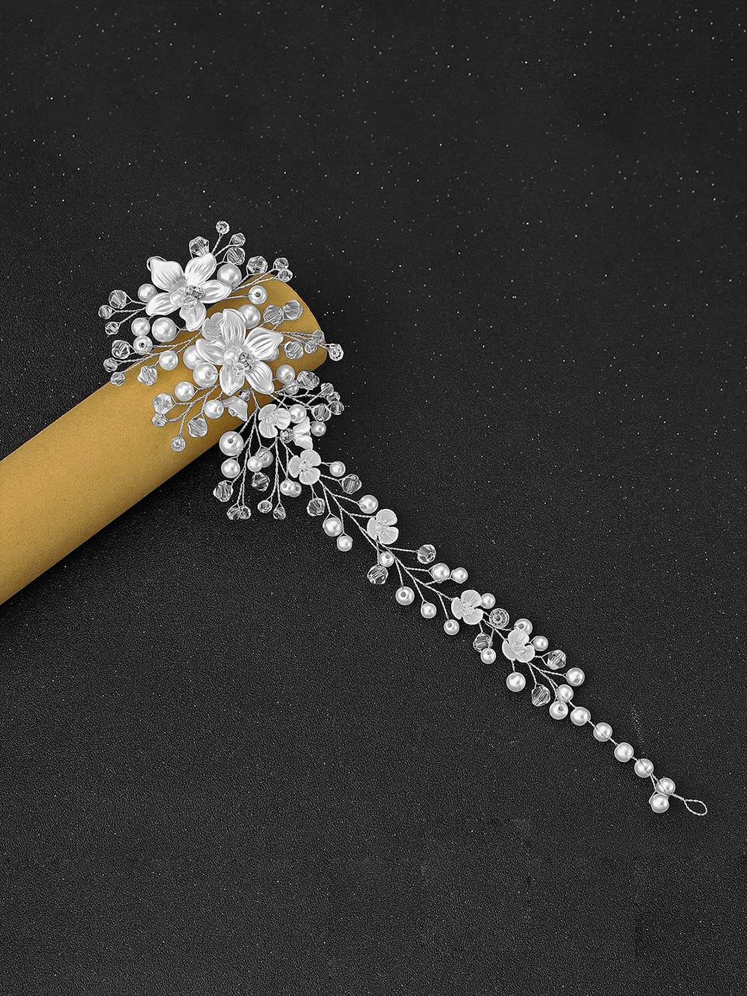 Yellow Chimes Bridal Hair Vine for Women and Girls Bridal Hair Accessories for Wedding Silver Headband Hair Accessories Wedding Jewellery for Women Floral Bridal Wedding Head band Hair Vine for Girls Headpiece