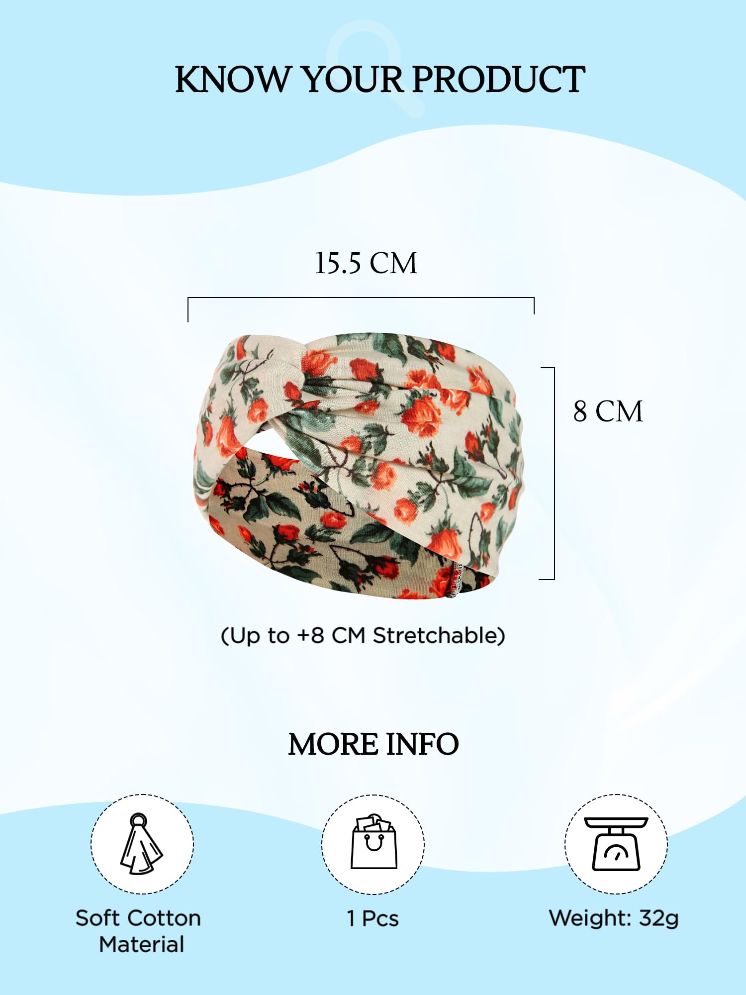 - 1 Unit overall. Pack include 1 Pcs of very soft cloth Knot Head Bands. The diameter of headband is 15.5 CM, and width is 8 CM.