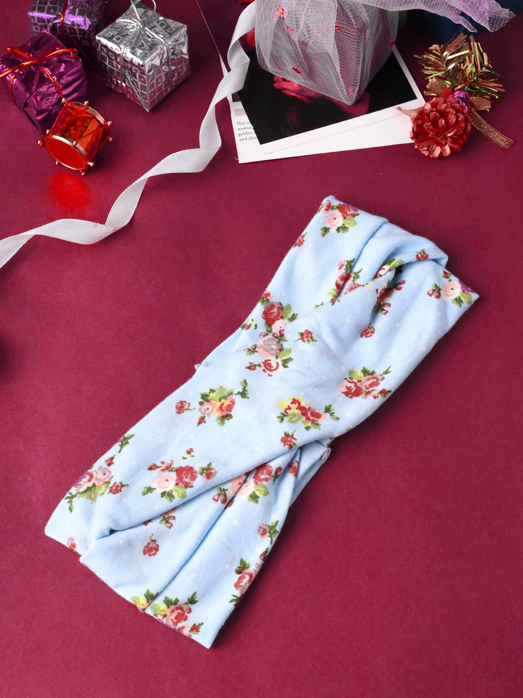 Yellow Chimes Head Bands for Girls Headbands for Women Fabric Floral Printed Blue Headband Hair Accessories for Women and Girls