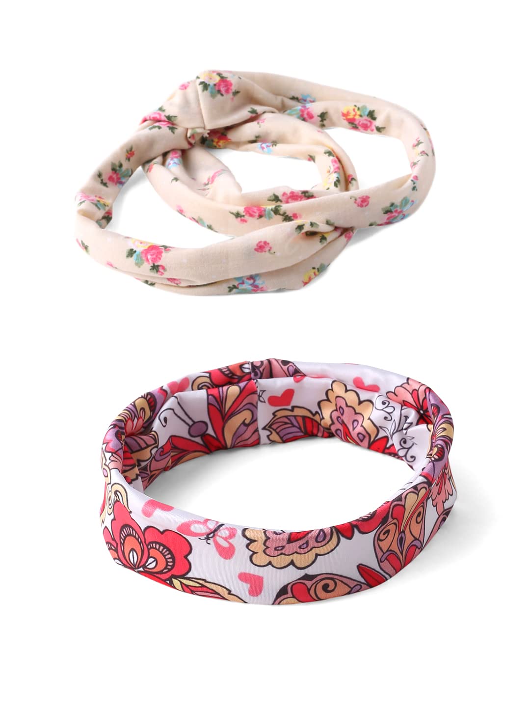 - Looks - Pack of 2 printed, fashionable hairbands. These hairbands come in trendy floral print with light base colour. Use it whether you're making a ponytail, braid, or bun and you'll love it.