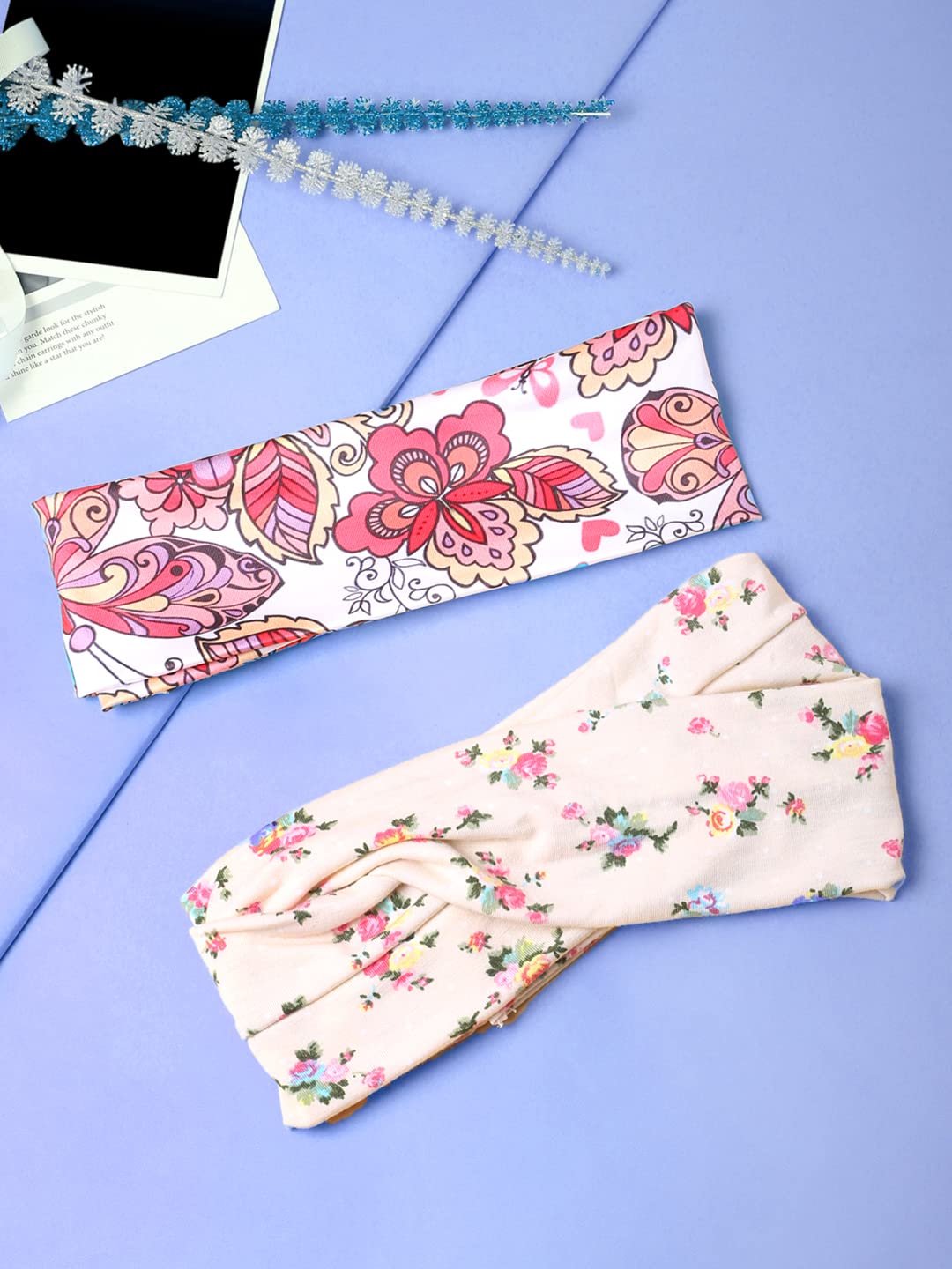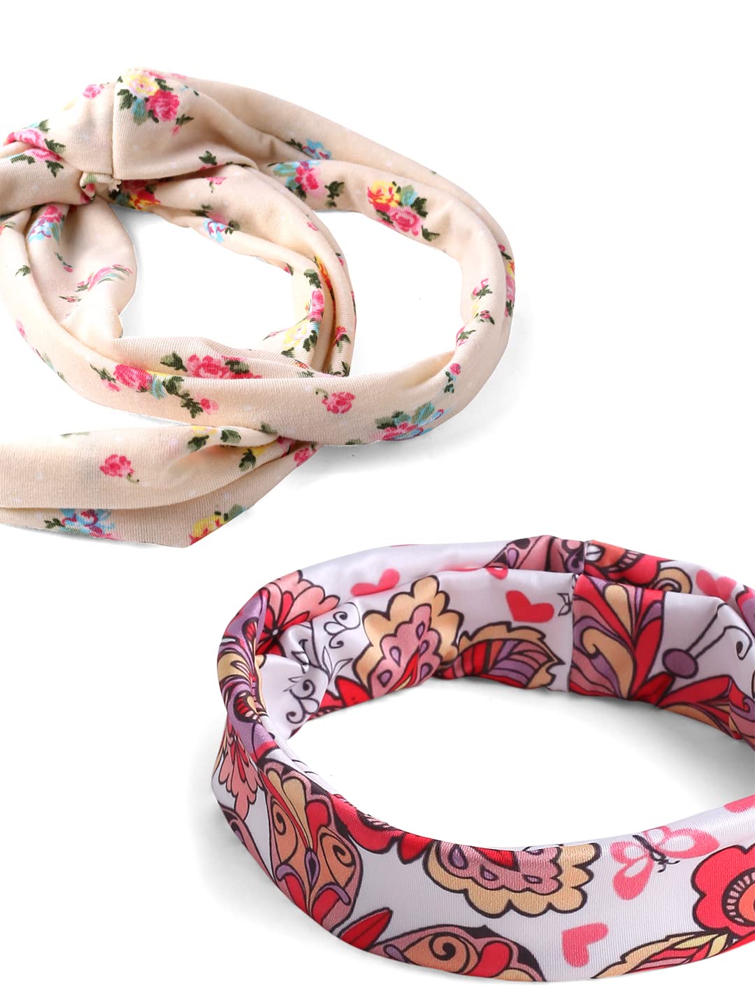 Yellow Chimes Head Bands for Women Set of 2 PCs Hairband Layered Floral Print Hair Accessories Broad Fabric Hairband Headband for Women and Girls.