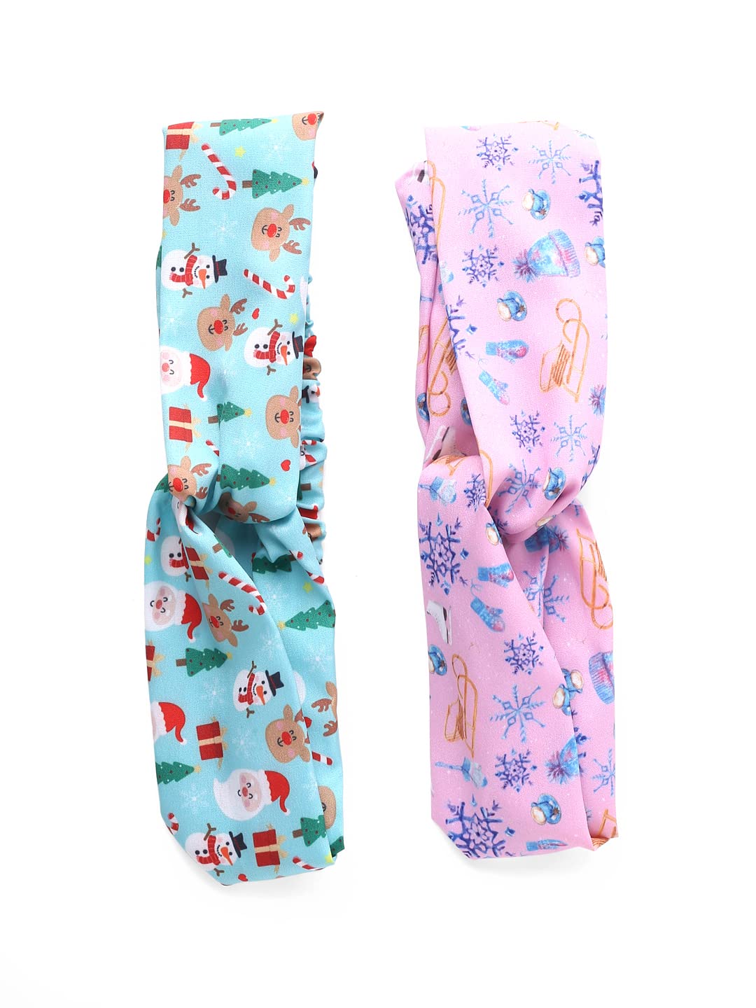 Each pack includes two unique headbands, adorned with vibrant Christmas patterns. Embrace the holiday spirit with classic elements like: