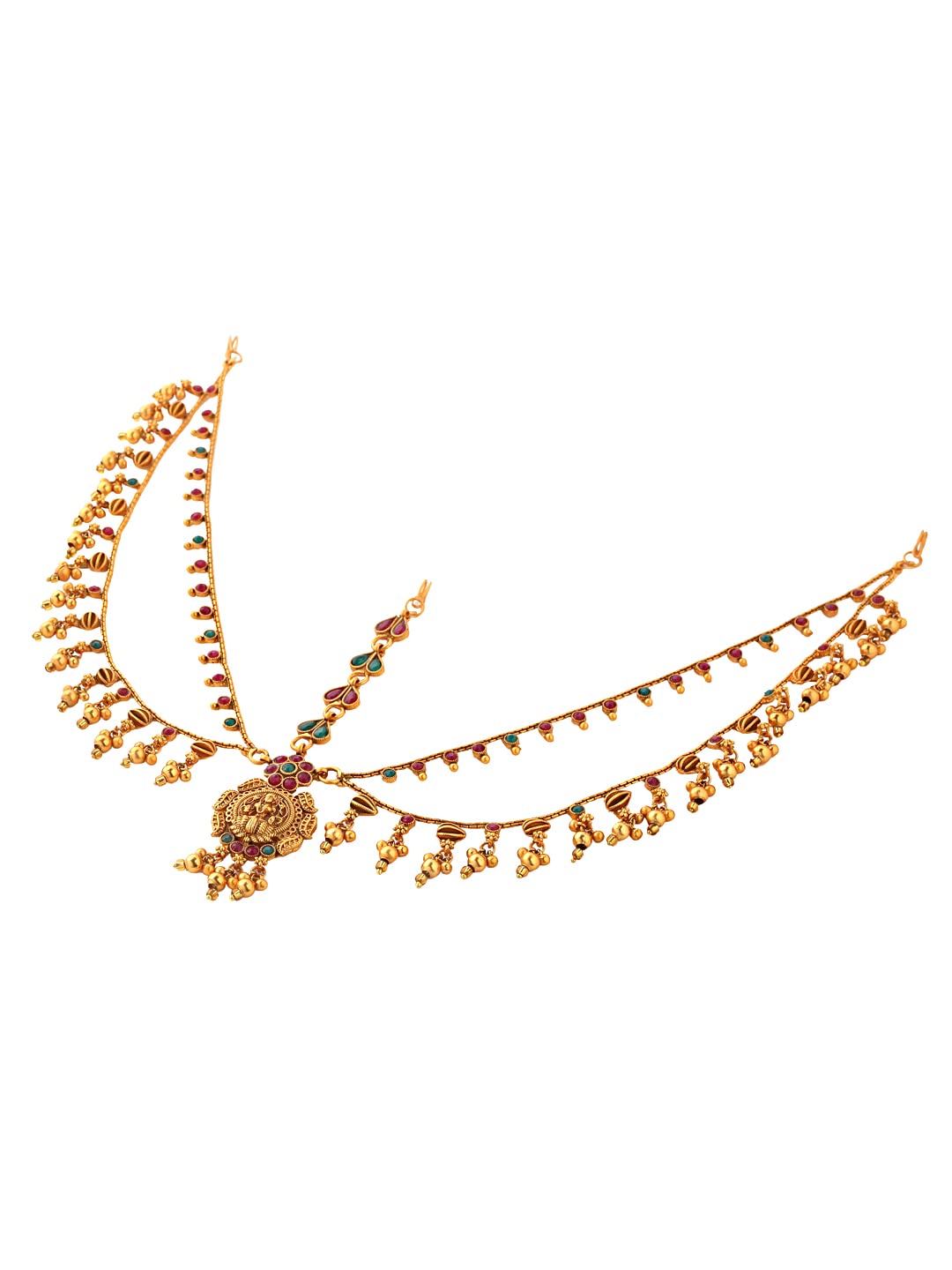- Standout with the intricately designed Gemstones studded Gold-plated Head Chain ( Damini) in Multilayers. Complete your Traditional looks at any occasion with this timeless jewelry. A denitely stand-out piece for your Selective Collection.